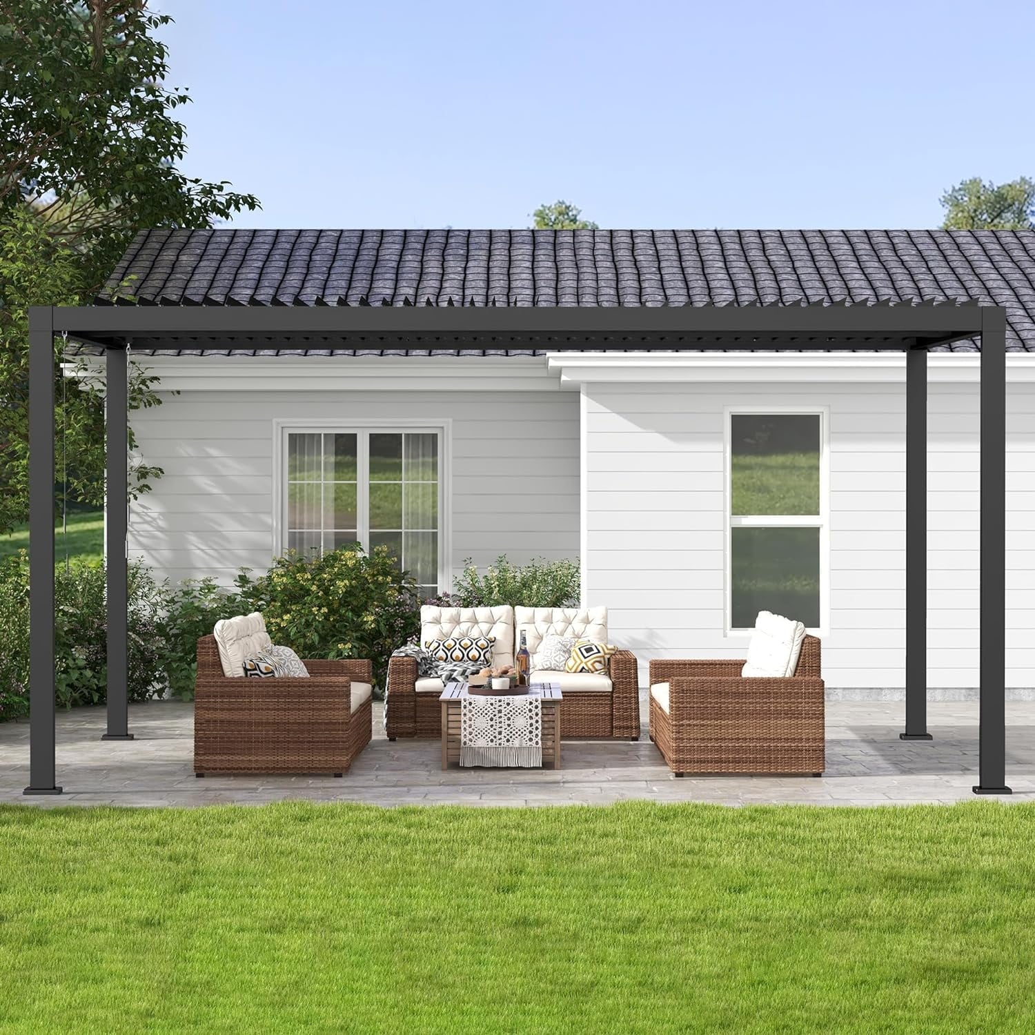 12'x16' Adjustable Louvered Pergola, Heavy-Duty Aluminum Outdoor Pergola, Metal Hardtop Pergola with Adjustable Roof for Patio, Deck, Garden, Yard, Black