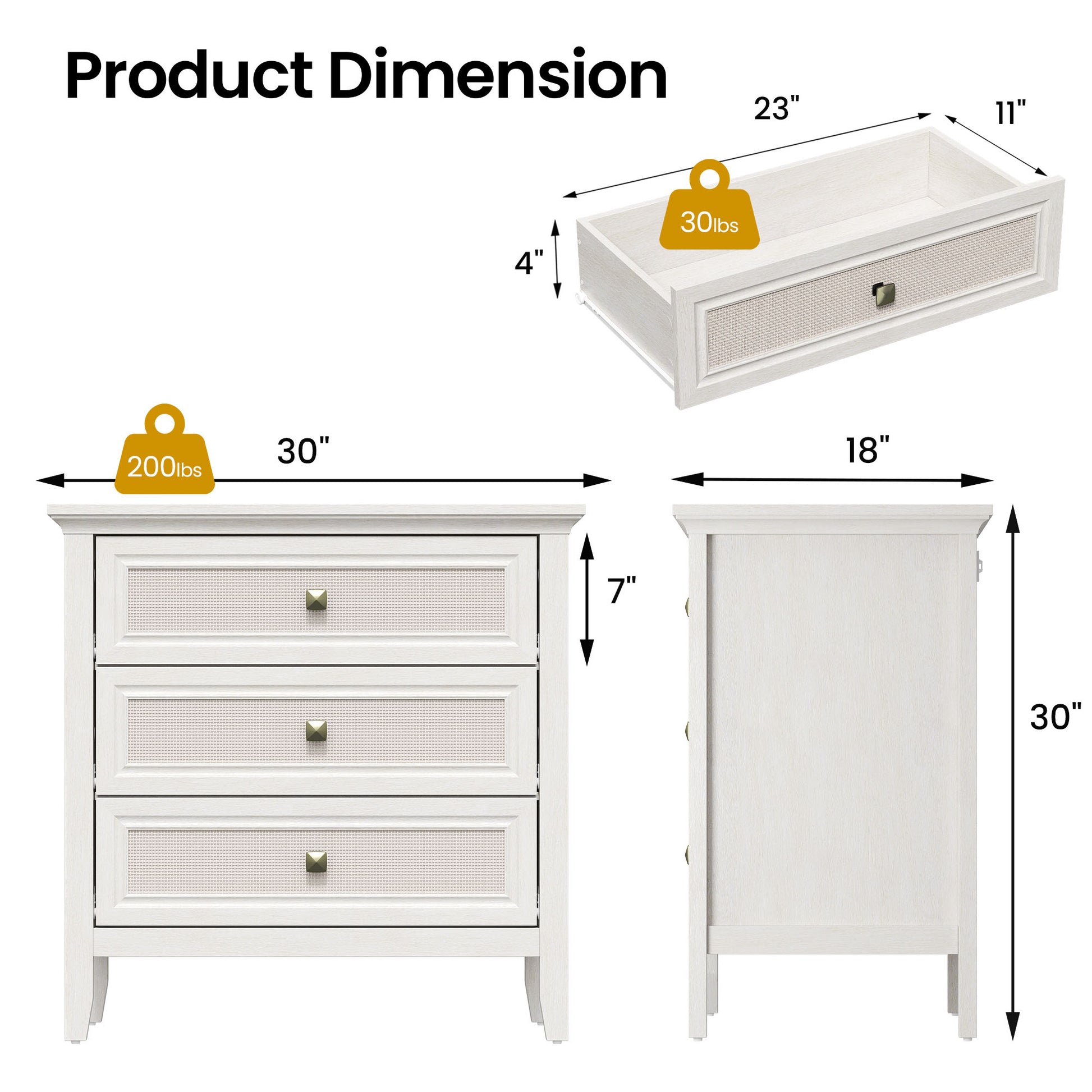 Easy to Assemble & Clean: Overall dimension is 30" W x 18" D x 30" H. Our bedside table includes a detailed instruction manual and hardware for effortless assembly. Simply wipe with a cloth to keep the table looking pristine with little effort.
