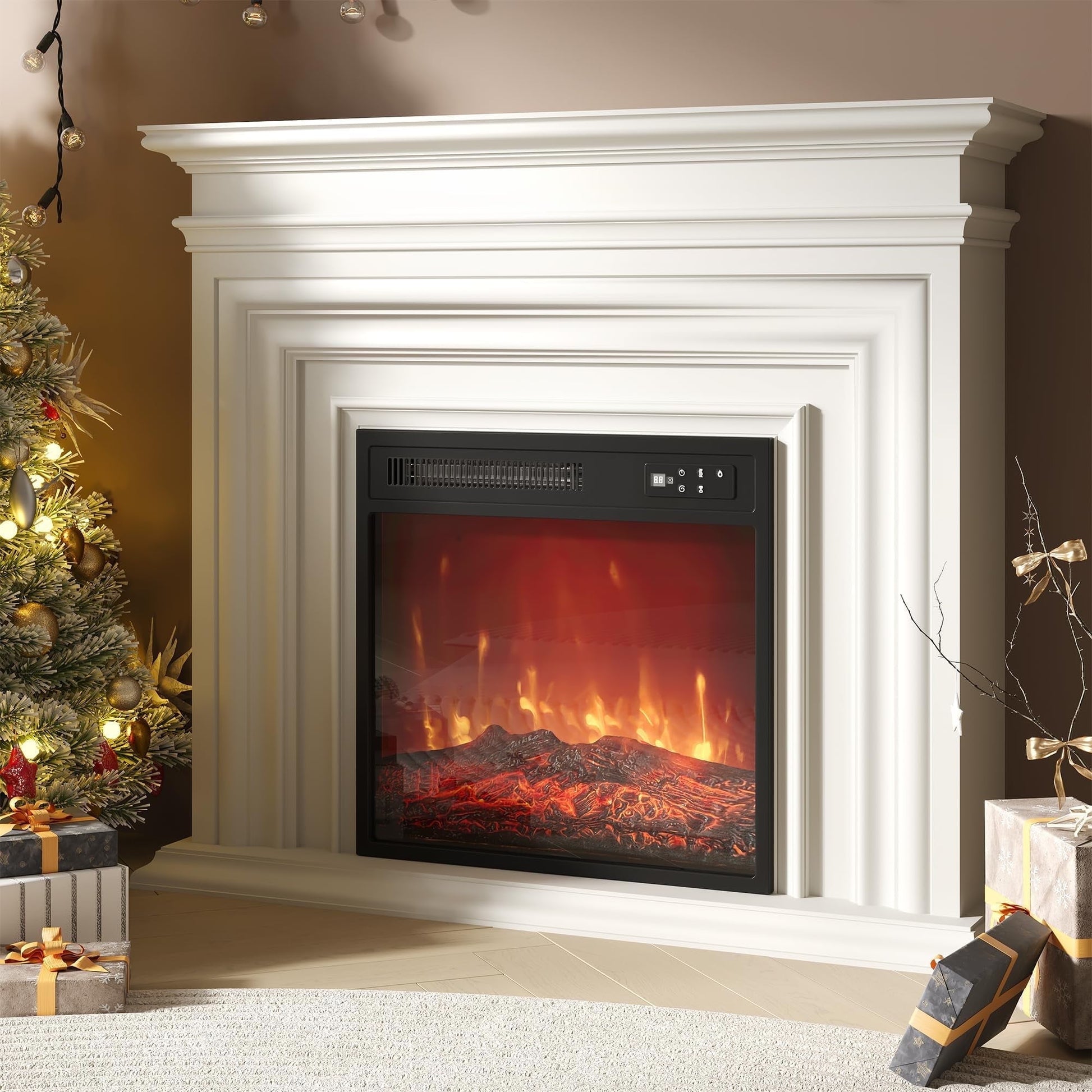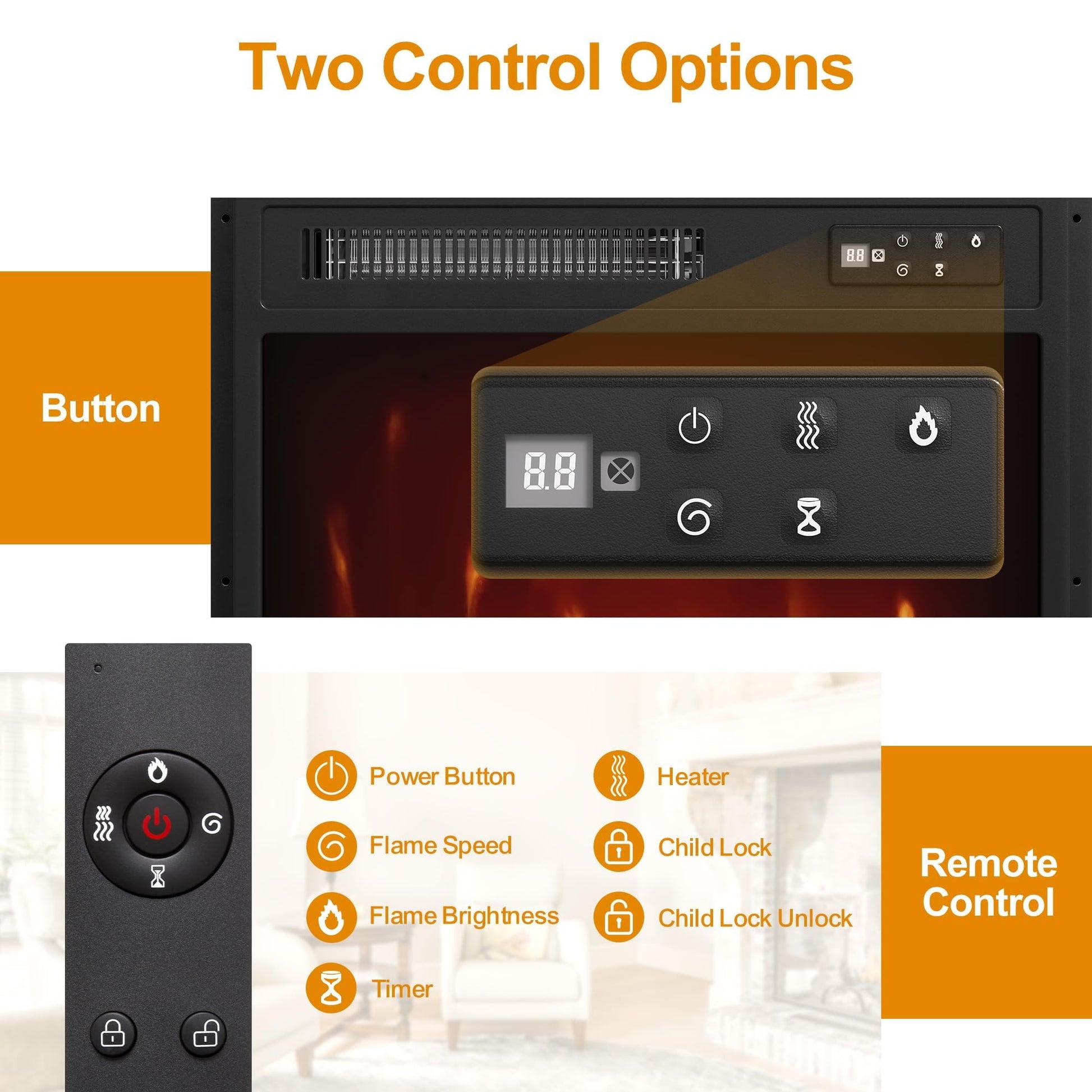 CozyHome 18'' Electric Fireplace Insert with Remote Control, Recessed Fireplace Heater with Adjustable Temperature & Flame Brightness, Small Heater with 8H Timer & Low Noise, 110V/1500W, Black