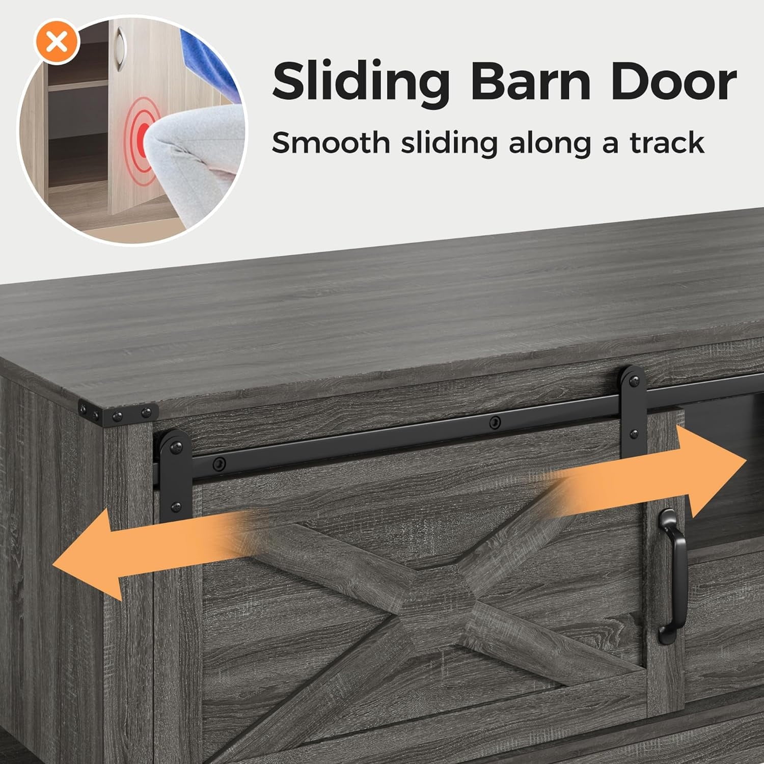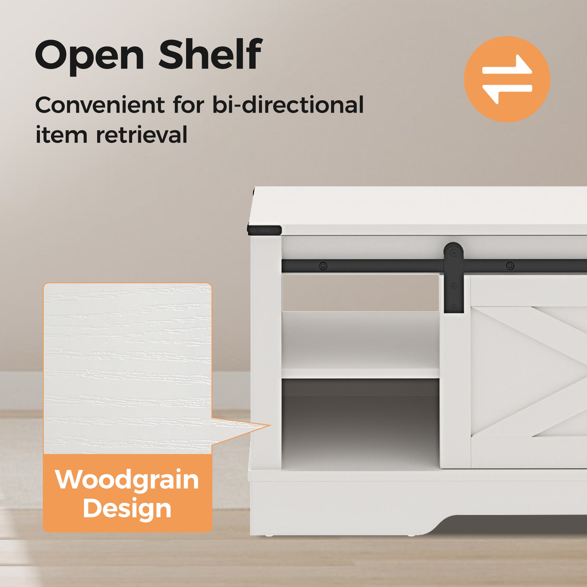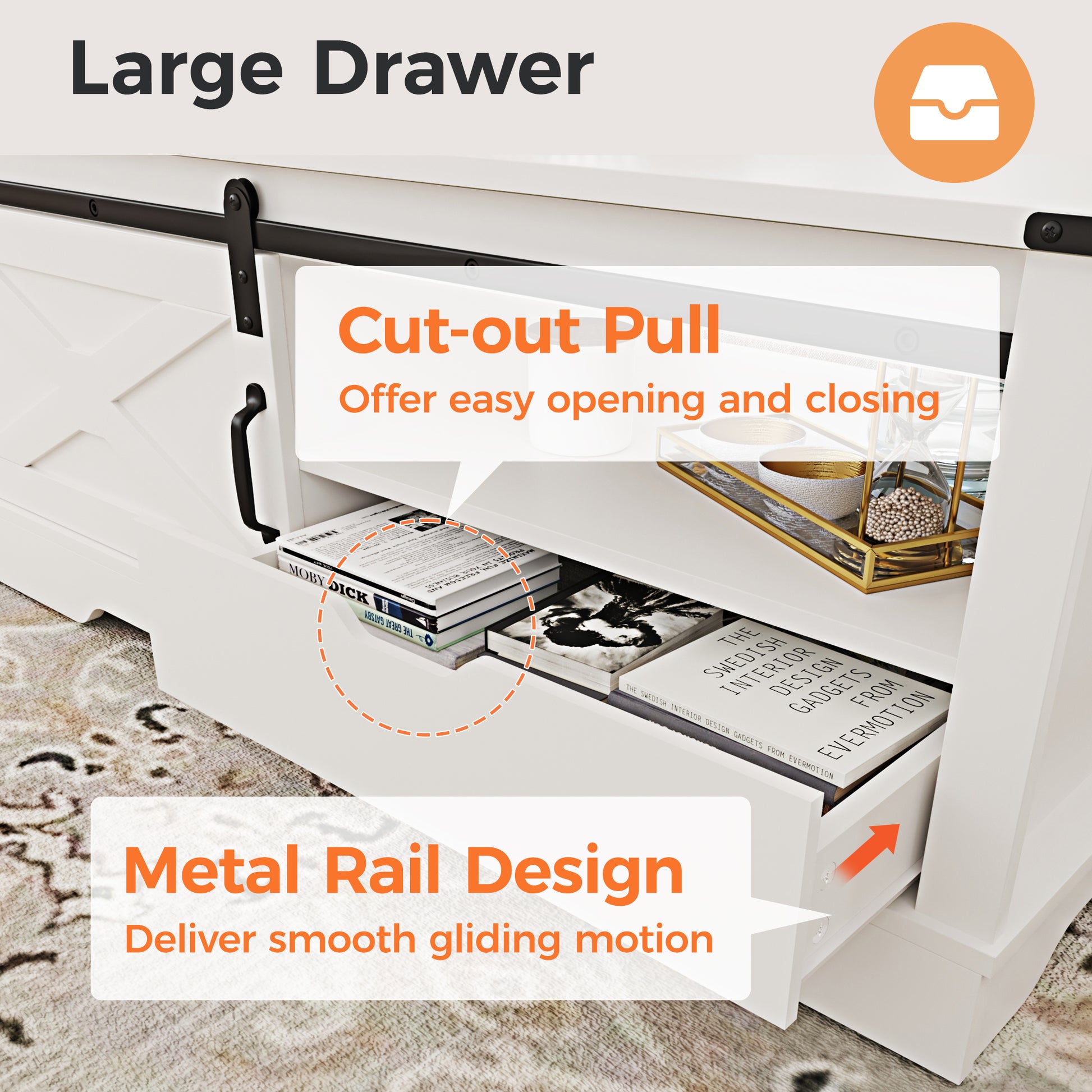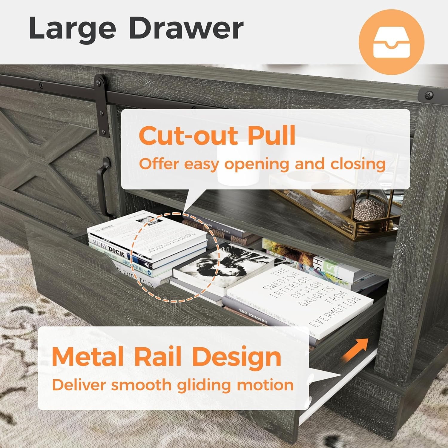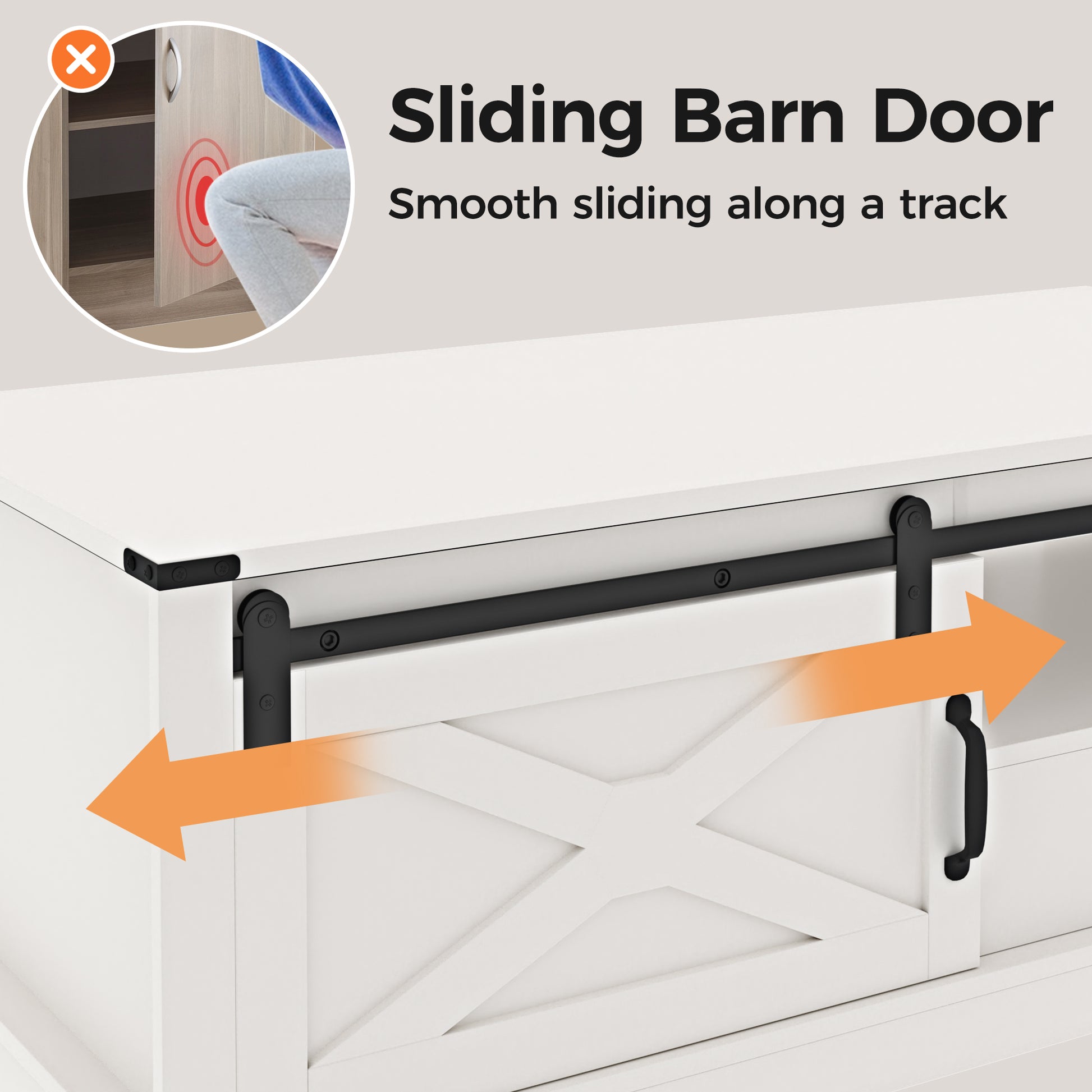 Farmhouse Coffee Table with Storage and Sliding Barn Door, 48'' Rustic Living Room Table , Rectangular Center Table