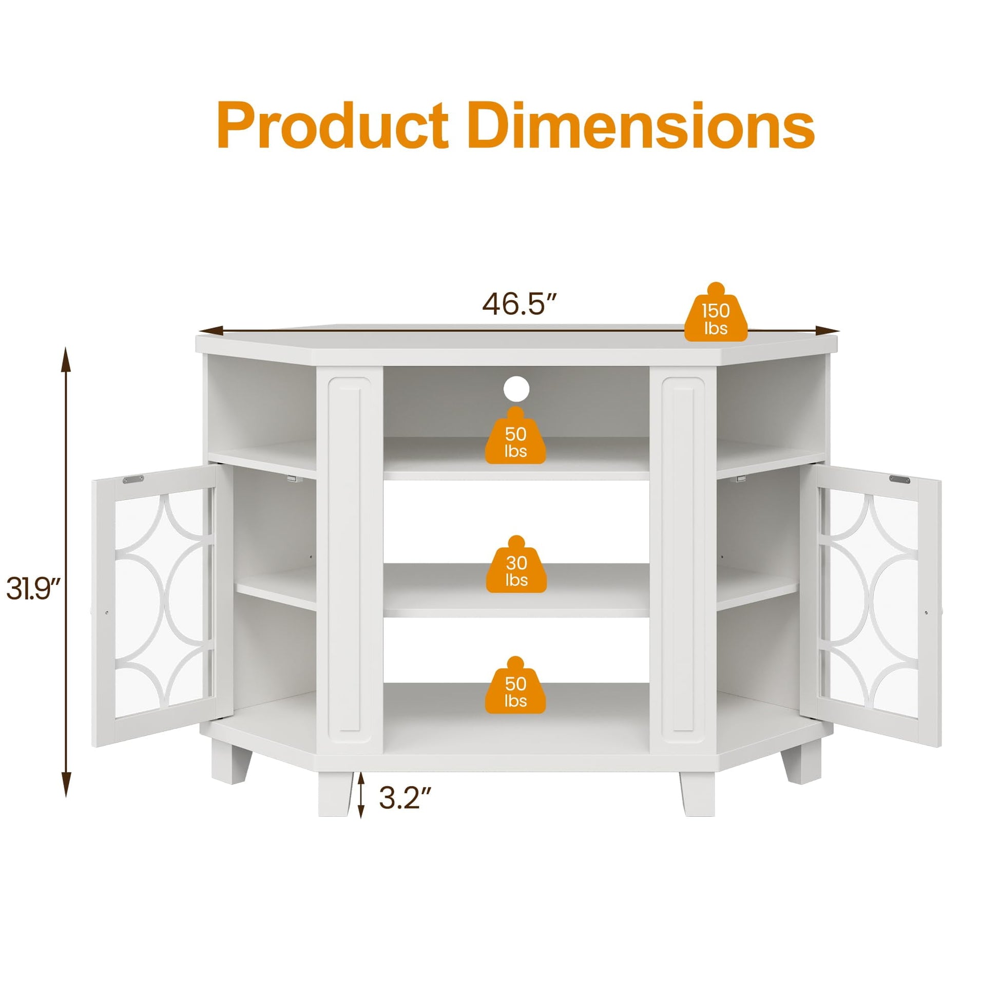 - Flexible Storage: The corner TV stand features 3-level adjustable shelves for personalized organization. Remove the shelves to accommodate larger or taller items, or pair it with the Heynemo 18" electric fireplace for the best setup. A wire management hole keeps cords hidden yet easily accessible.