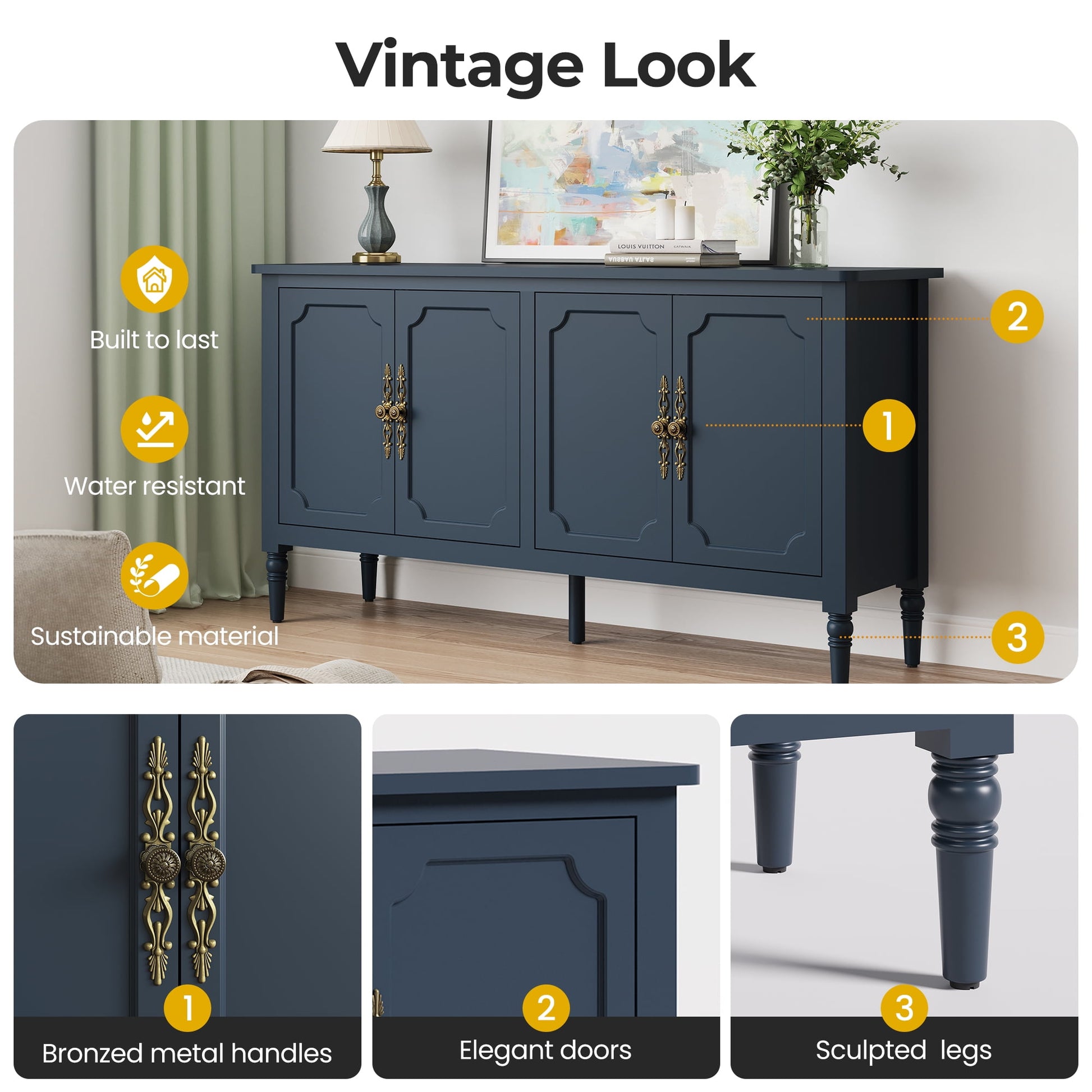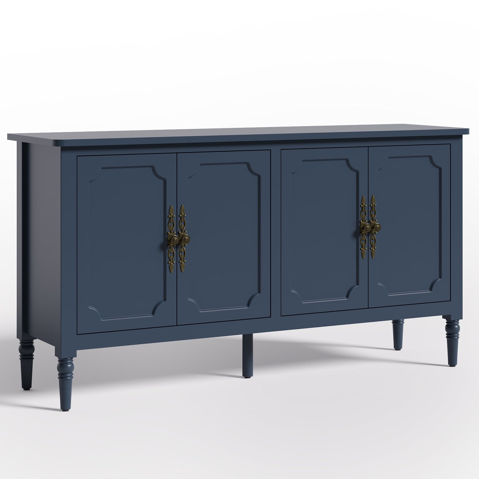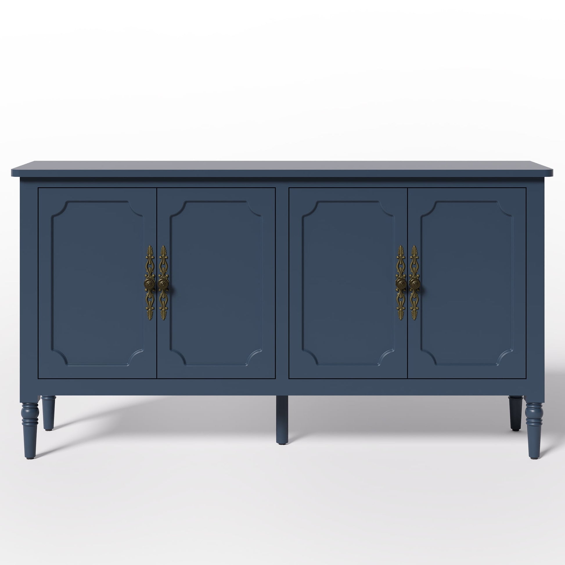 May in Color 58" Wood Buffet Cabinet, Mid-Century Modern Console Cabinet, with 4 Door & Media Storage, for Entryway, Living Room, Dining Room, Bedroom, Blue