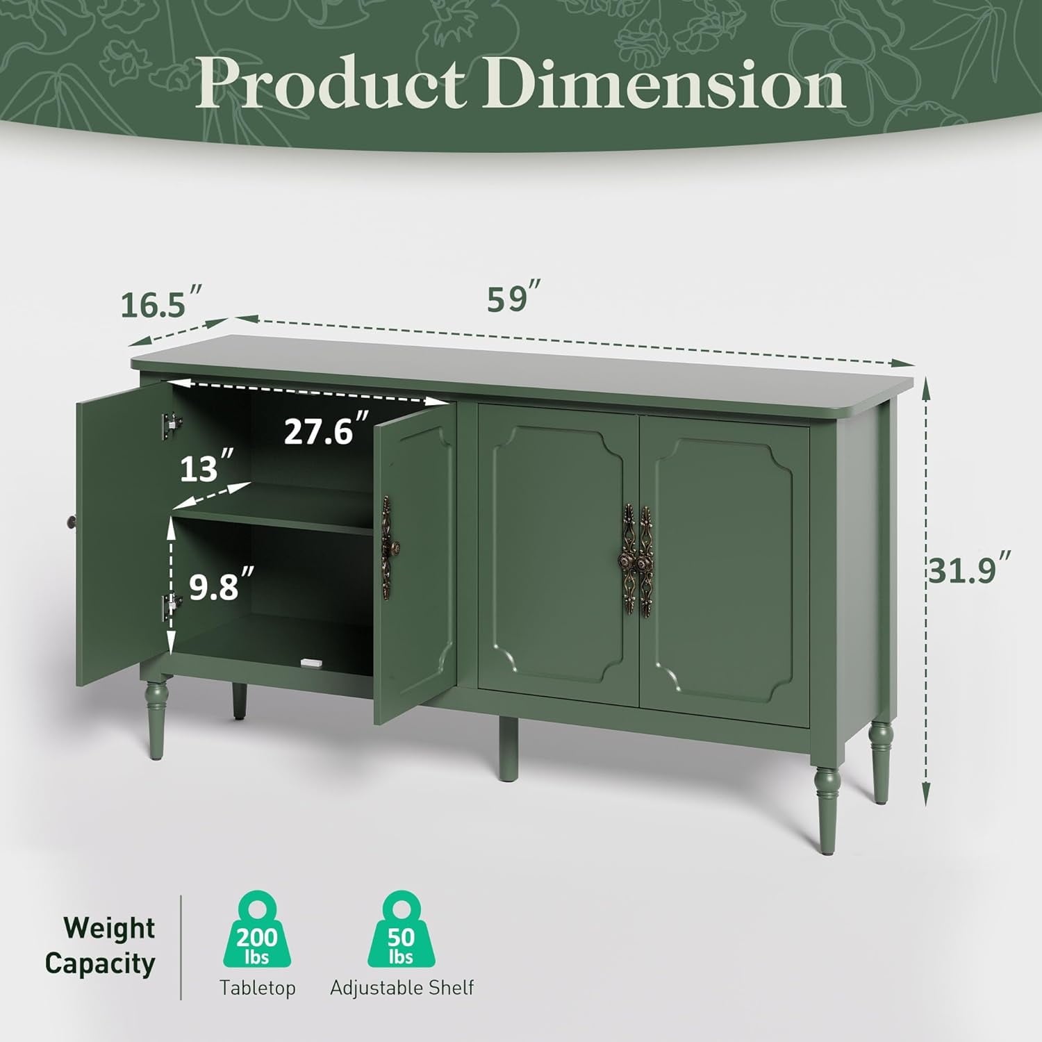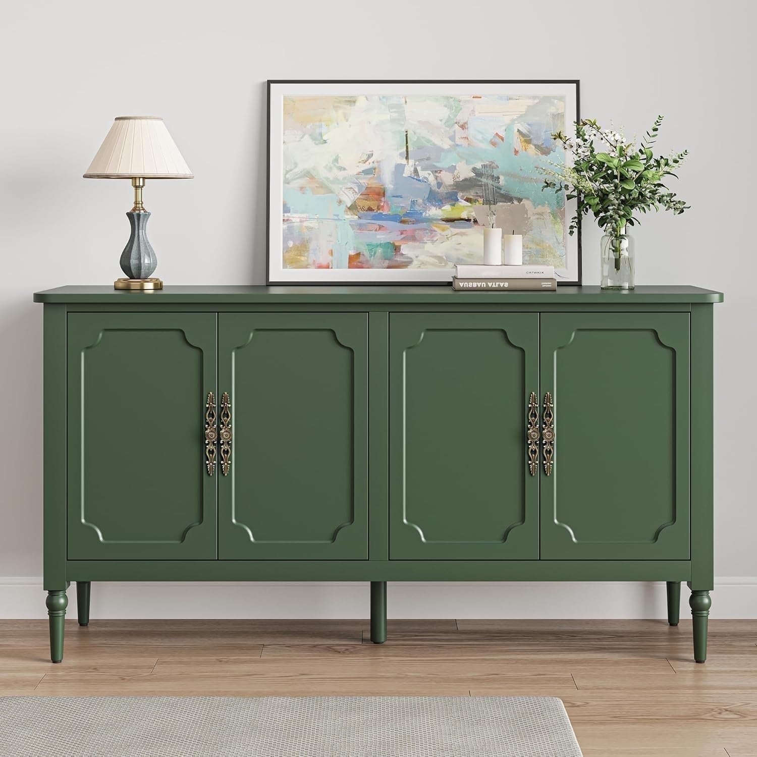 May in Color Console Cabinet, 58'' Wood Sideboard Buffet Cabinet with Storage & 4 Doors, Mid Century Modern Pantry Cabinet for Entryway, Living Room, Bedroom, Dining Room, Green