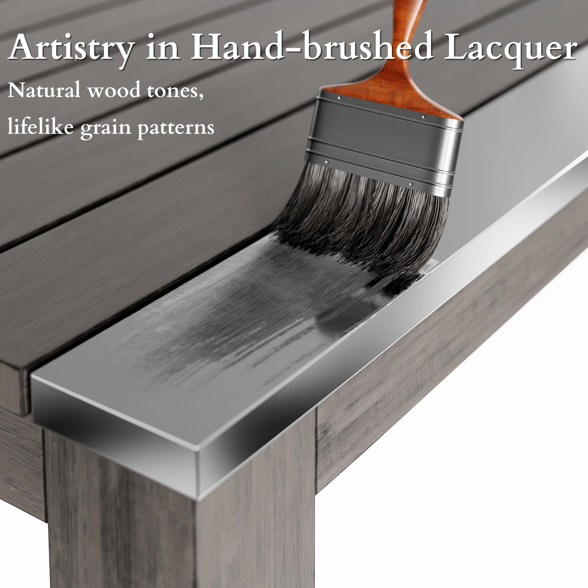 This outdoor dining Table blends timeless farmhouse charm with modern durability. Featuring a hand-painted surface with a wood-like texture and a rustic finish, it adds warmth and elegance to your patio, garden, or poolside. Built with a sturdy aluminum frame, it withstands the elements without fading or chipping. Perfect for meals, relaxing on the porch, or entertaining guests, this Table elevates any space with style and functionality.