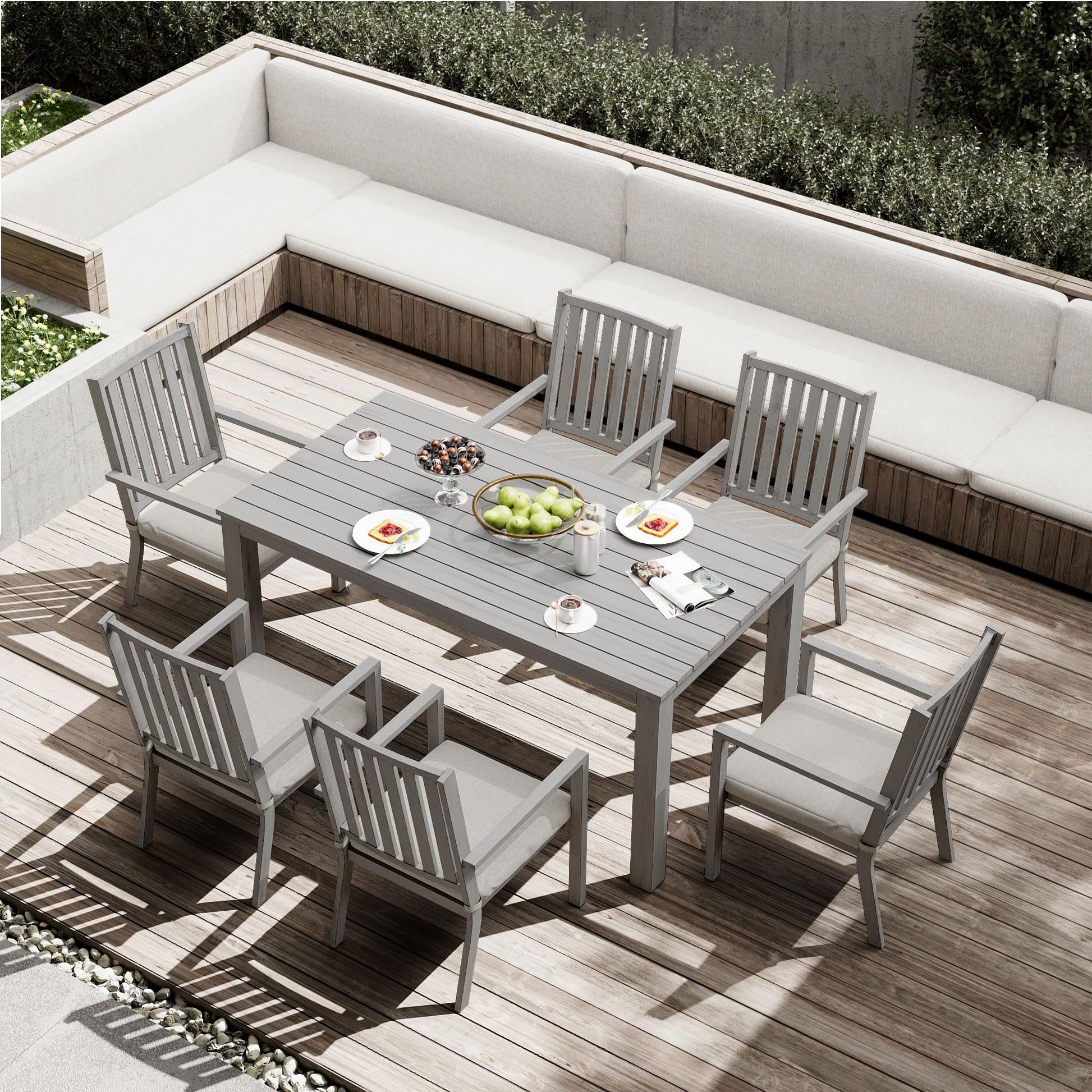 May in Color Wooden Aluminum Dining Table, Grey Outdoors Aluminum Table