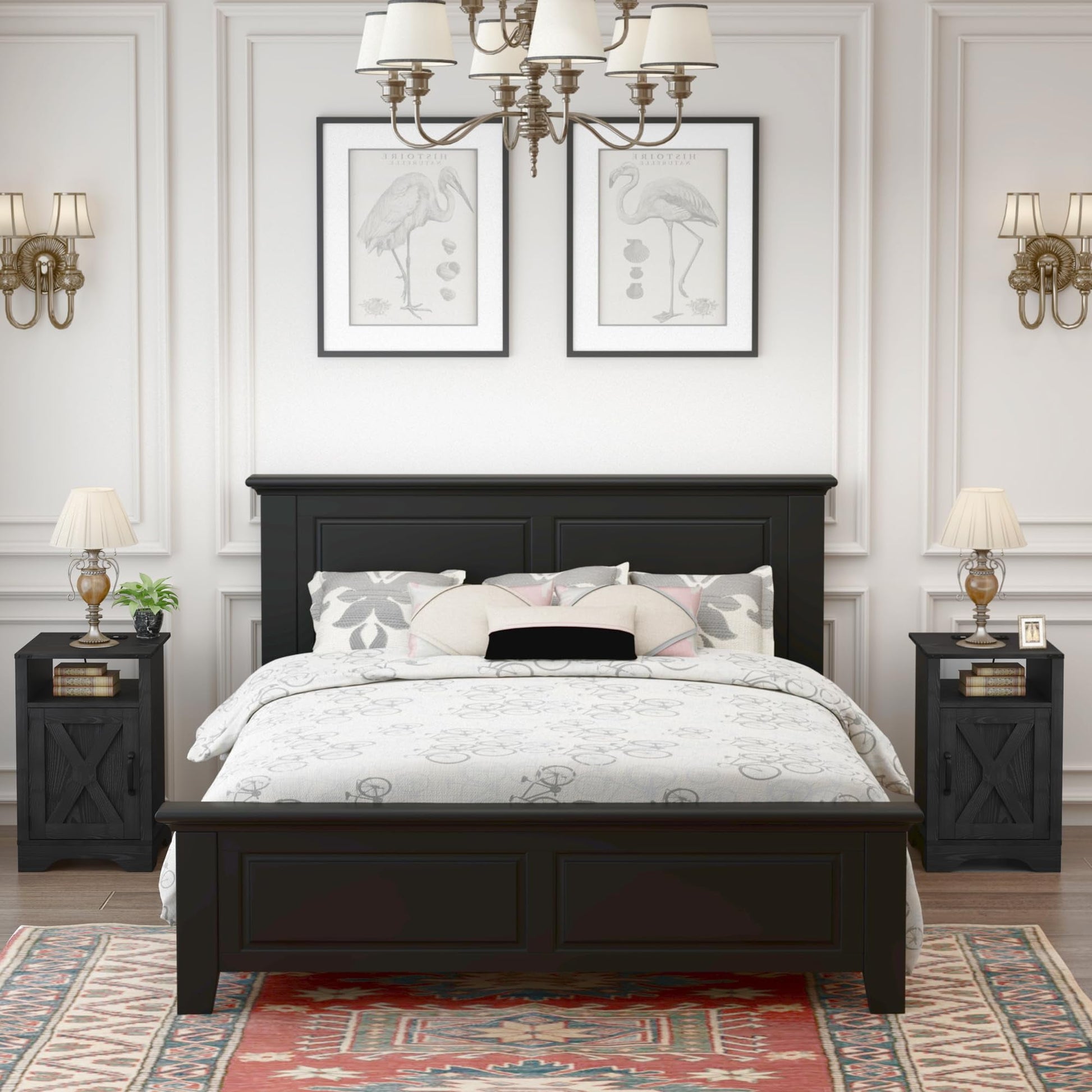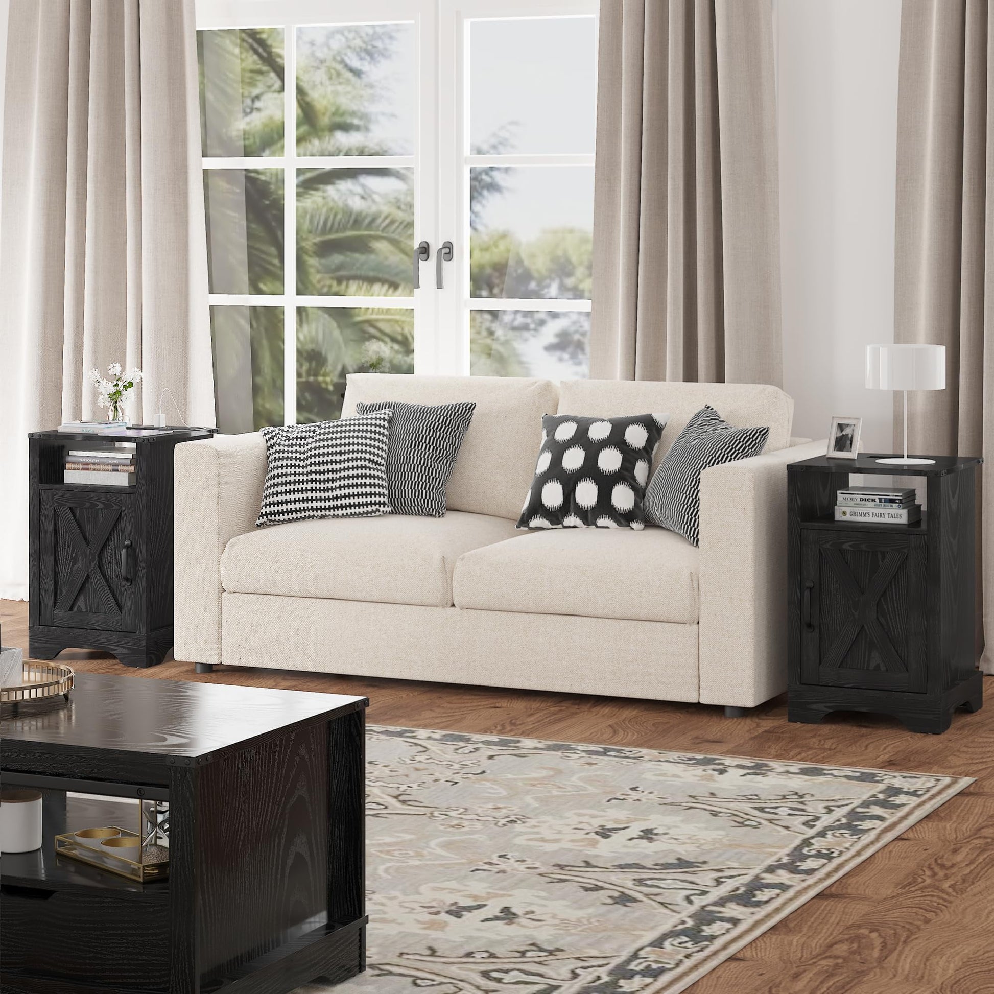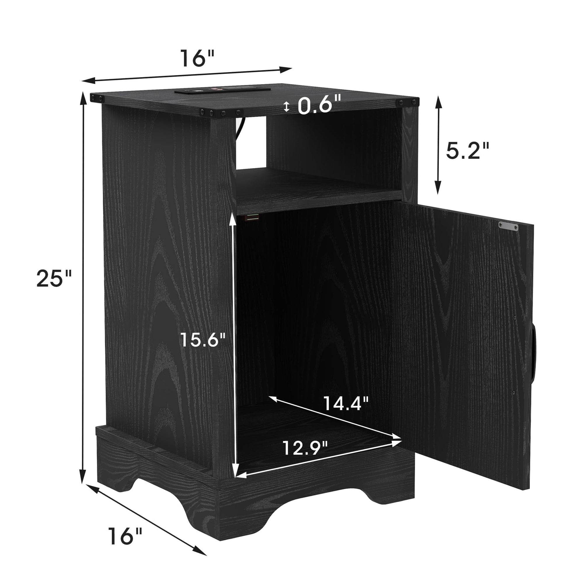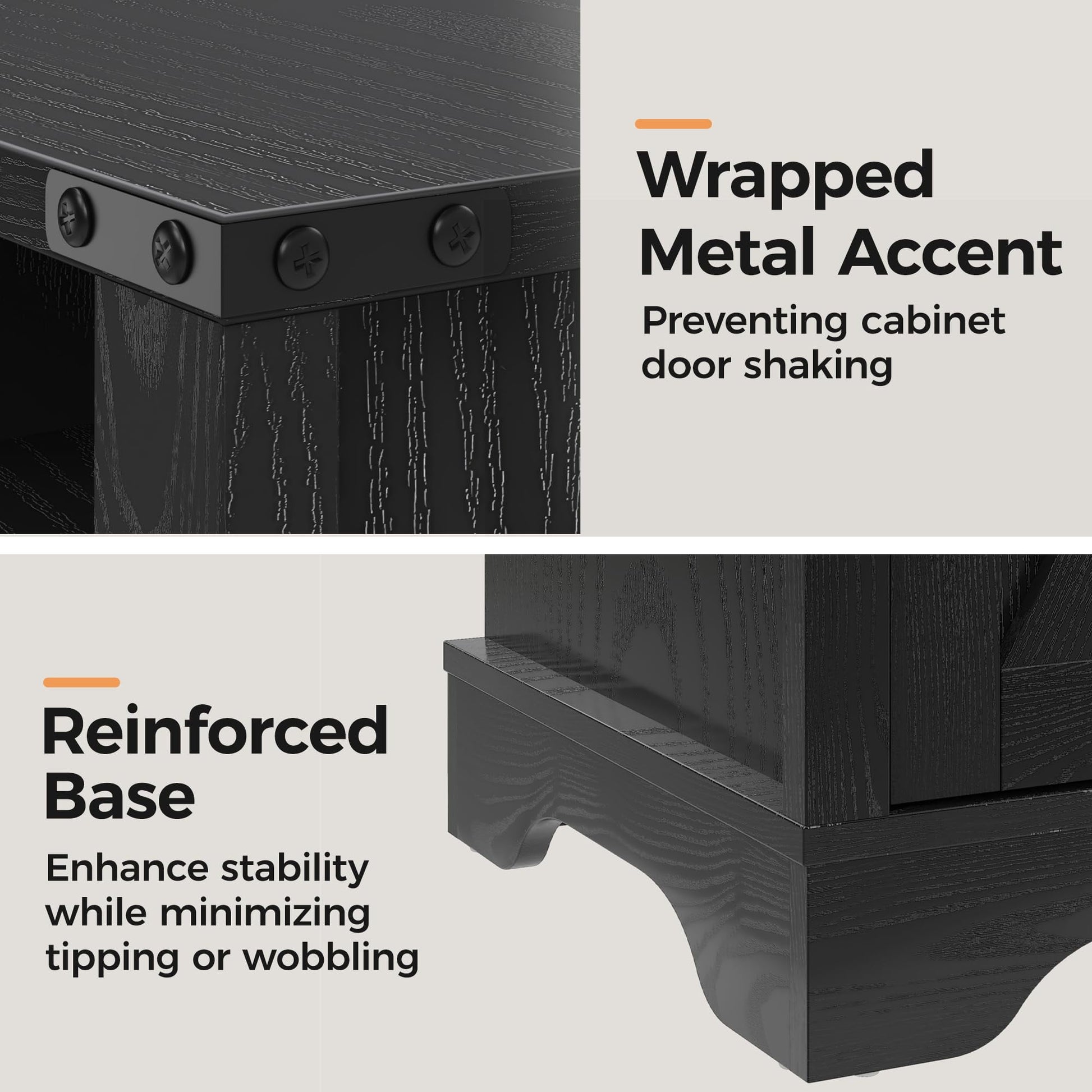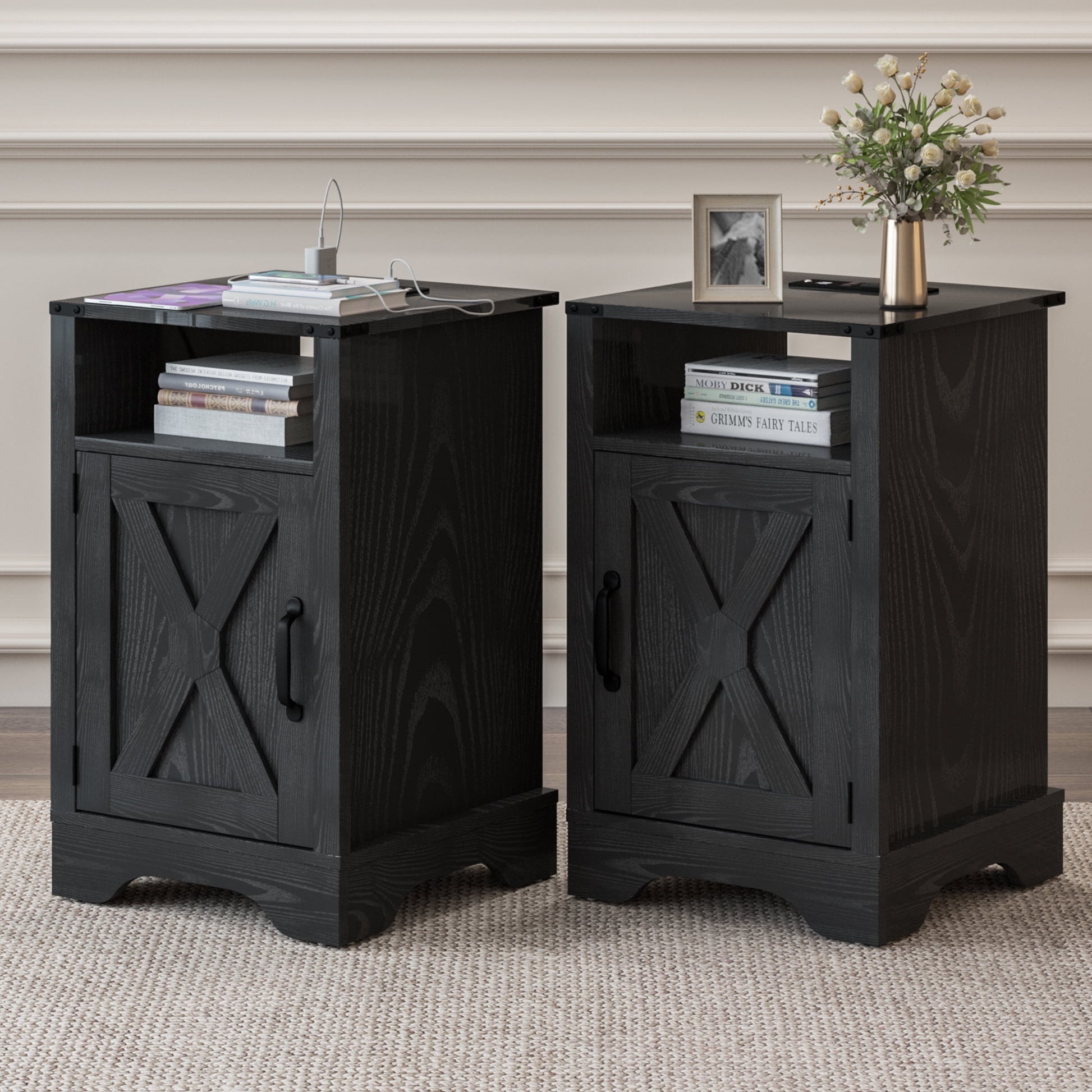 Mayincolor Farmhouse Nightstand Set of 2 with Charging Station, Wooden End Table, Rustic Night Stand with Storage Cabinet and Shelf, Tall Bedside Table for Bedroom, Living Room, Black