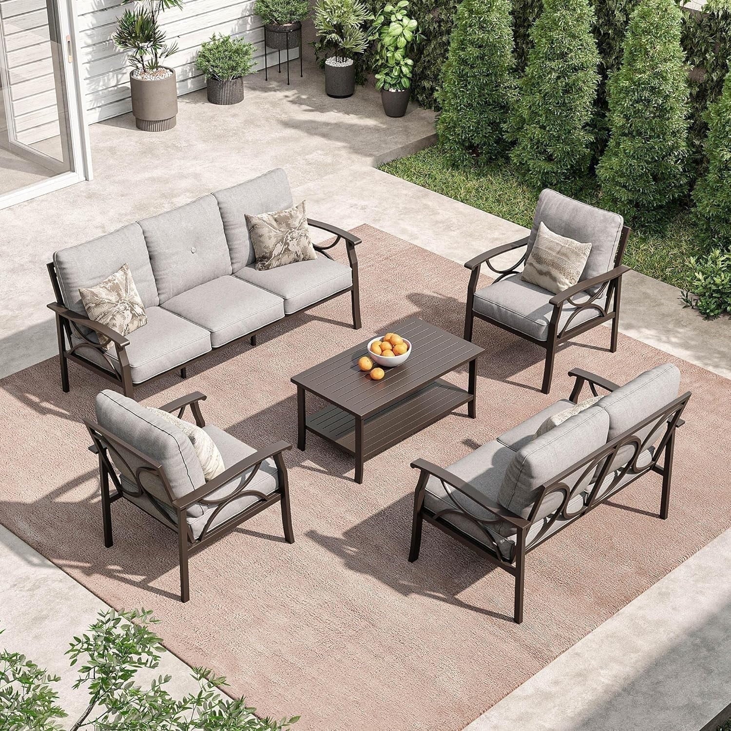 Outdoor Patio Furniture Set, 5 Piece Patio Conversation Set with Coffee Table, Metal Furniture Set for Porch Backyard Garden, Grey