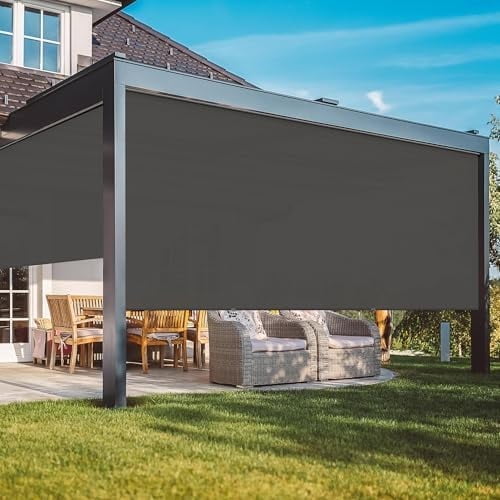 Outdoor Roller Shades for Patio with New Operation Mode (with Pull Rod-No Need Crank), Upgraded Materials Patio Shades Roller Up Outdoor with 95% UV Protection, Outdoor Blinds for Patio Proch