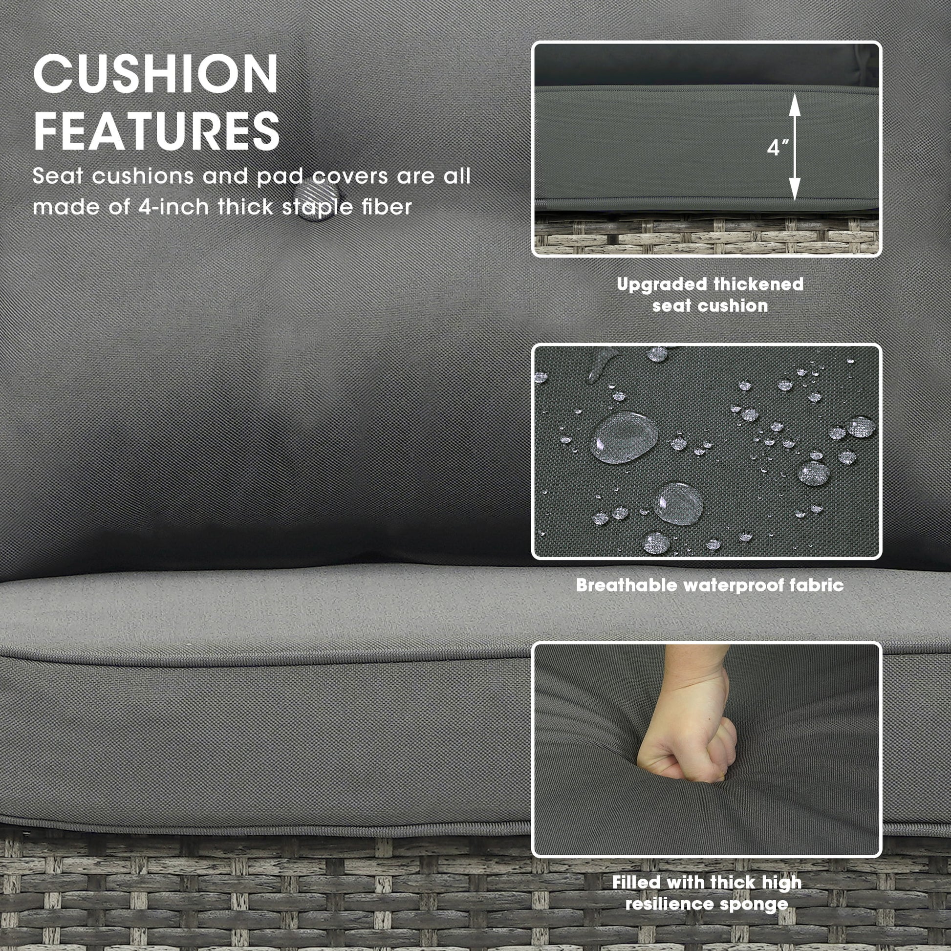 - 【Sturdy & Durable】This patio furniture is made of a strong frame and premium PE rattan, and strong enough to withstand all weather variations. Each seat capacity is 280 lbs. You can easily use it outdoors for many years