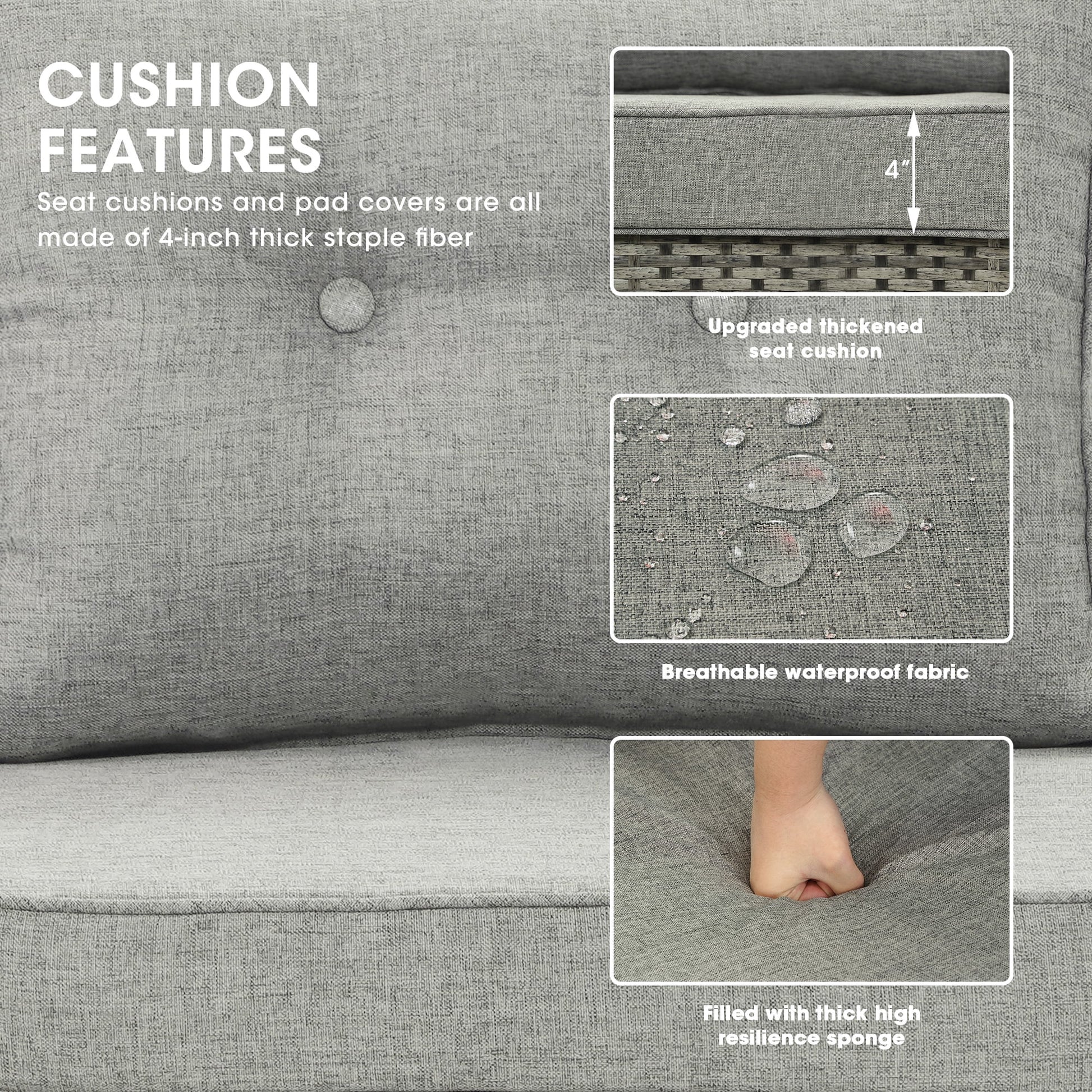 - 【Modern & Comfortable】 Modern design patio sofa with 4 inches thickened soft seat cushions take you more extraordinary comfort. Let you and your family enjoy a more comfortable outdoor living