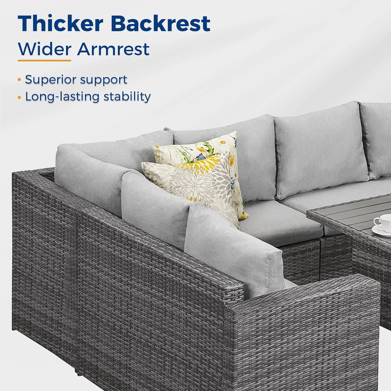 - 【Free Combination & Modern Design】-This outdoor sectional dining set can be easily changed to different layouts and is separable, providing enough space for gatherings of family or friends. The wicker patio furniture set blends functionality with a polished, classic design that is easy to fit any decor.