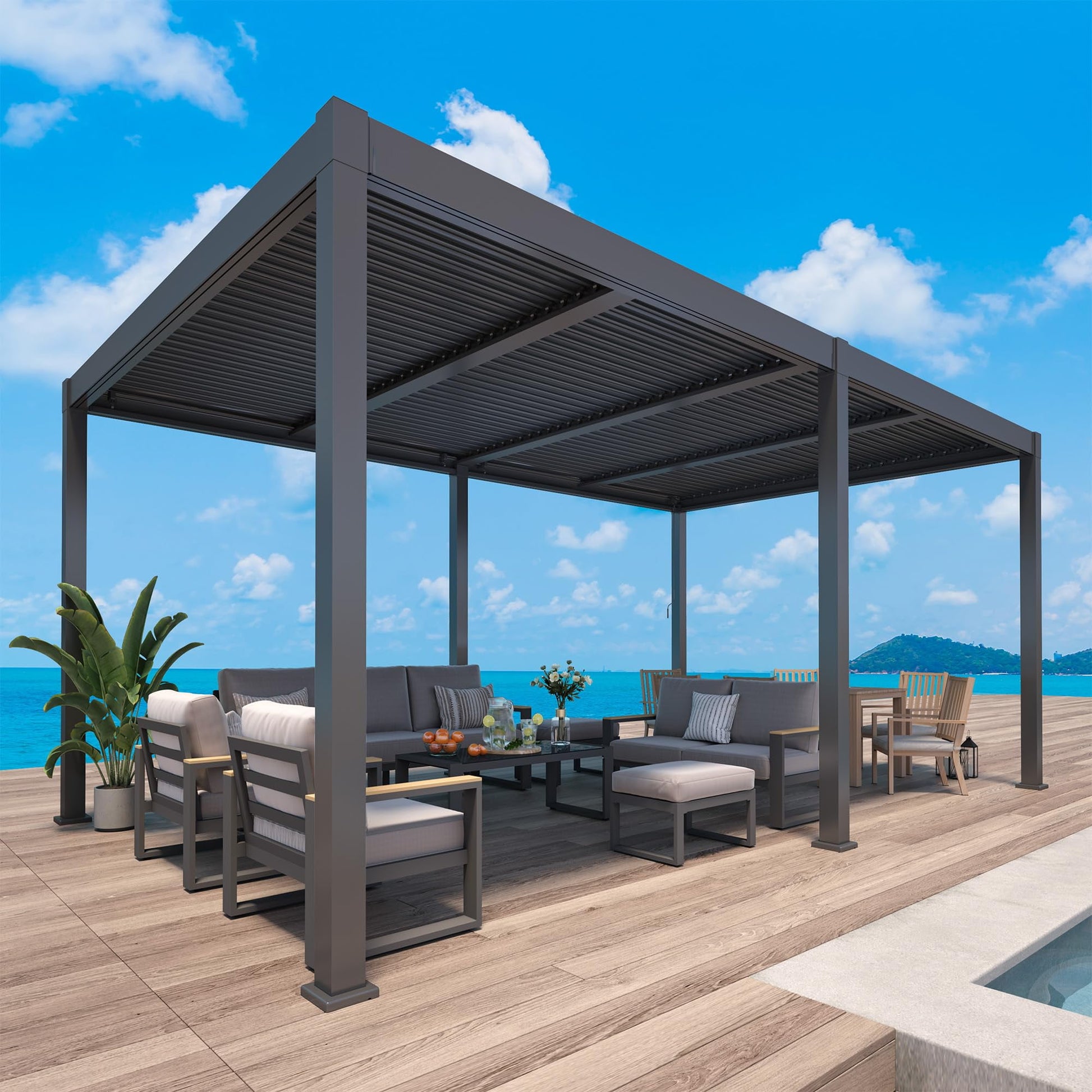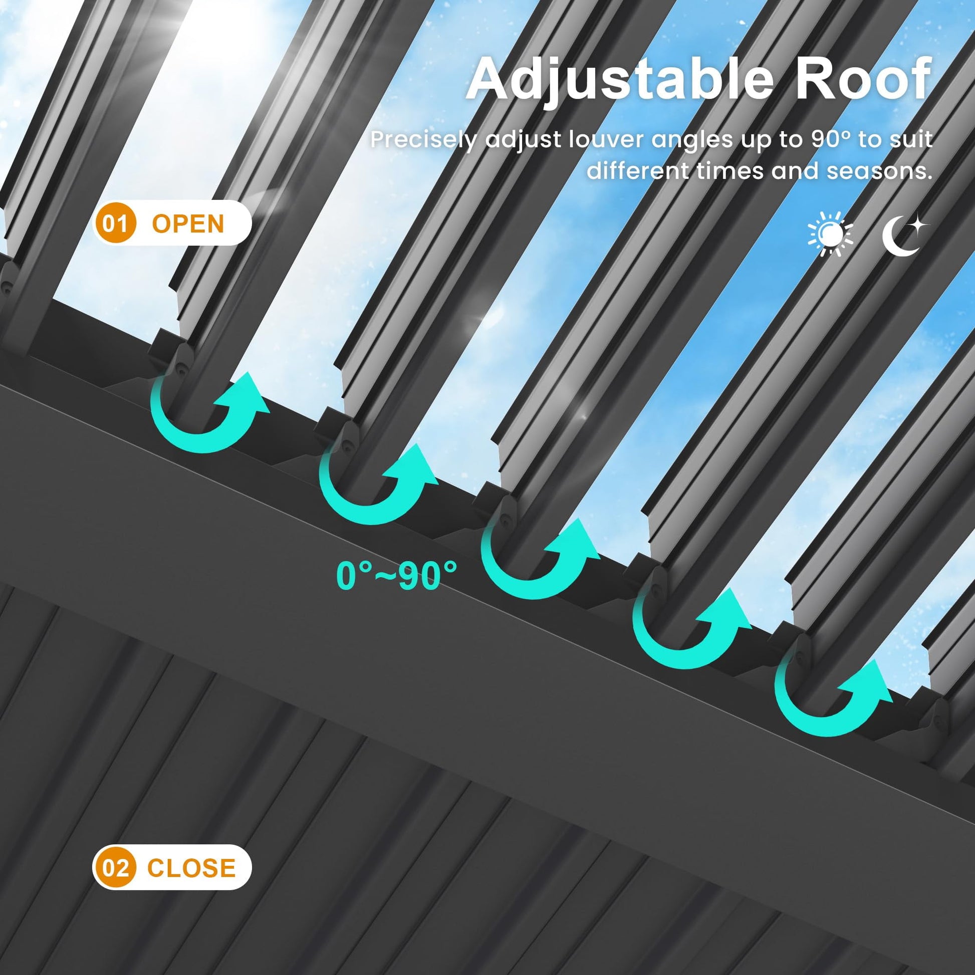 RoyalCraft 12'x20' Adjustable Louvered Pergola, Heavy-Duty Aluminum Outdoor Pergola, Adjustable Metal Hardtop Roof Pergola for Patio, Deck, Garden, Yard, Black