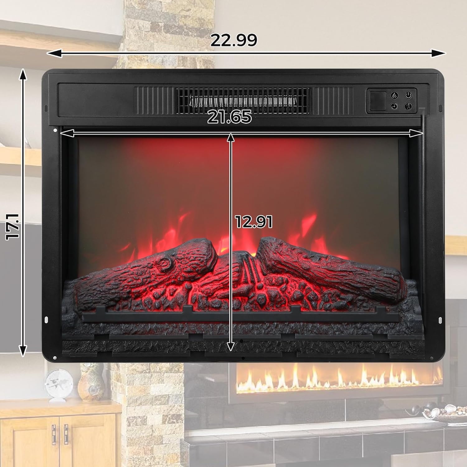 Royalcraft 23 Inch Electric Fireplace for TV Stand, Built-in Fireplace Heater with Multicolor Flames and Timer, 1400W Insert Heater with Remote Control, Low Noise, Black