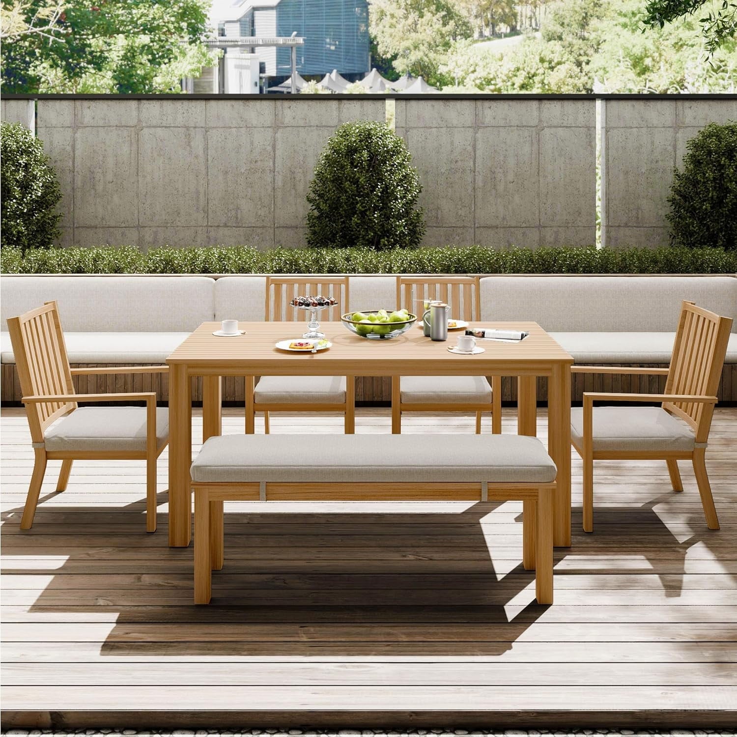 RoyalCraft 6 Pieces Patio Dining Sets, Aluminum Outdoor Dining Table with 4 Chairs and Bench, Outdoor Patio Dining Furniture Set with Removable Cushion for Lawn, Garden, Backyard, Brown