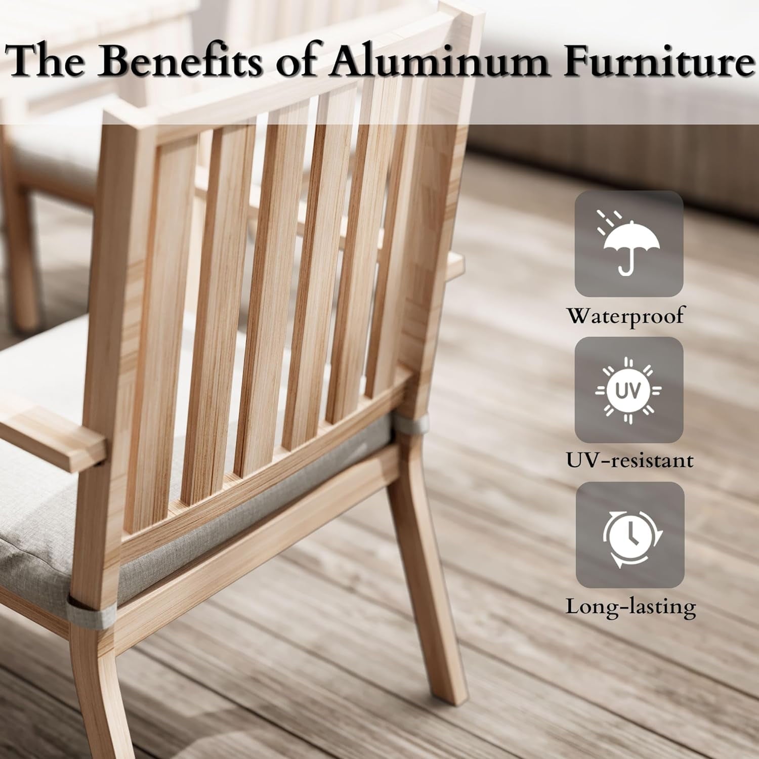 The outdoor seating sets are adorned with wood grain road finish, creating a natural and warm ambiance within your home that seamlessly blends with the outdoor garden views. Thanks to a special waterproof treatment, the outdoor chair set can withstand rainy days, making it ideal for outdoor use and minimizing maintenance concerns. Just envision the possibilities ¨C with this new outside chairs and tables, you can relish a delicious breakfast and coffee or create a tranquil office space amidst the beauty of nature.??