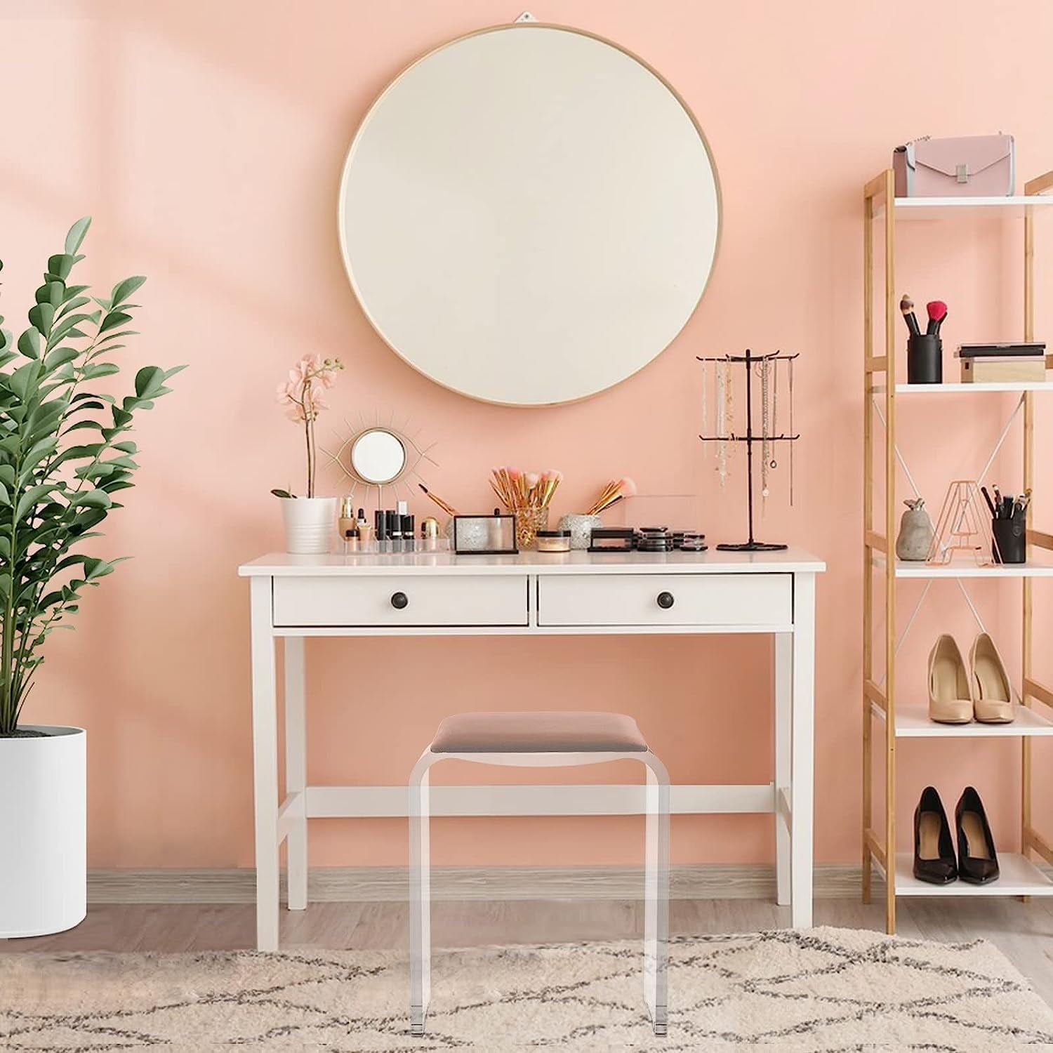 - ¡¾MULTIFUNCTIONAL¡¿Suitable for bathroom as Spa shower stool, pool Bath Stools, also suit as chair or acrylic tables for living room, Suitable for indoor and outdoor use. No need any tool to assemble. The acrylic shower bench is easy to move to different occasions.