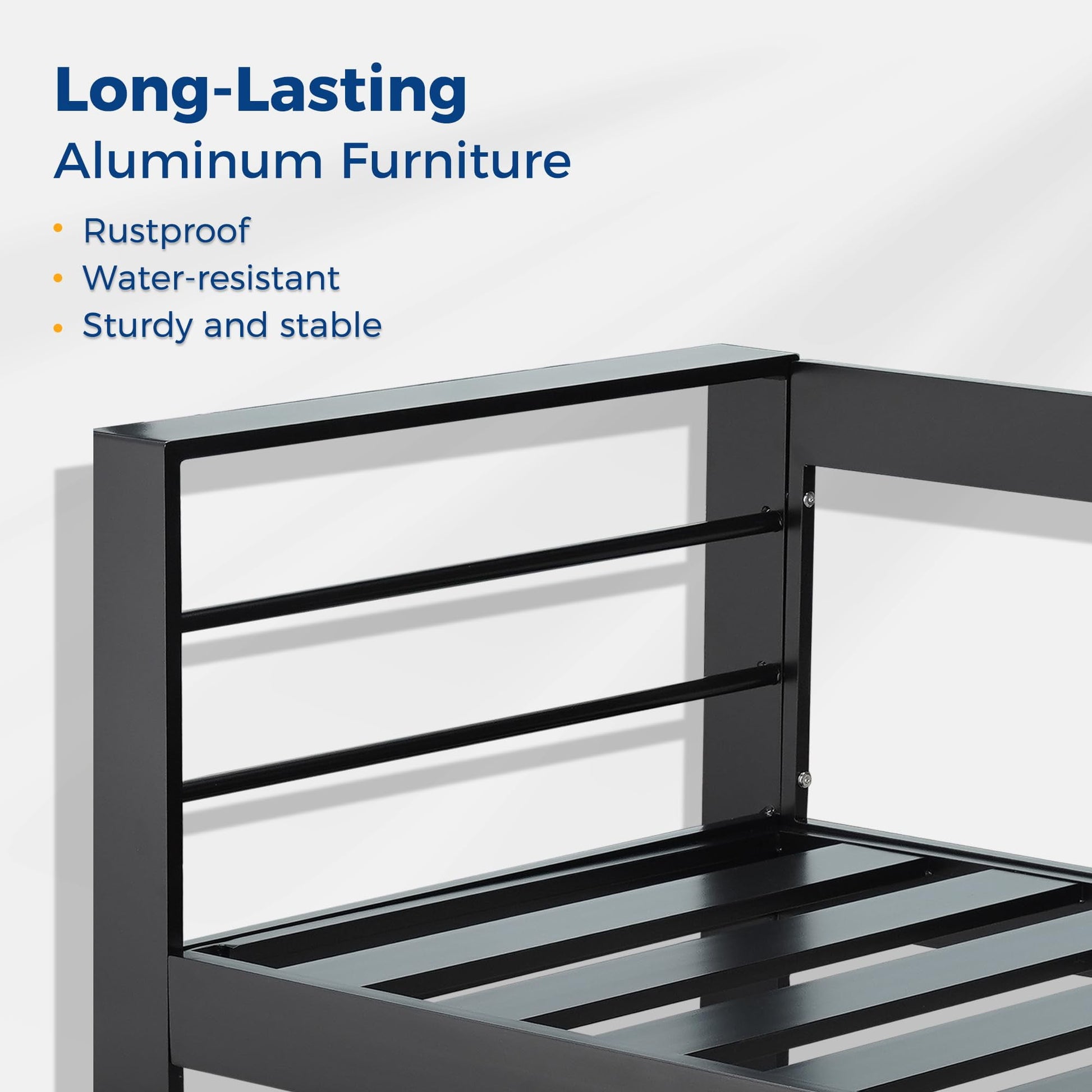 - UPGRADED ALL-ALUMINUM FRAME: Our modern patio furniture is crafted with upgraded all-aluminum, which is different from iron sofas on the market. Aluminum was once known as the aristocracy of metals because of its unique properties. The surface of aluminum will naturally form an oxide layer and can protect itself from rusting, fading, and corroding in all kinds of weather.