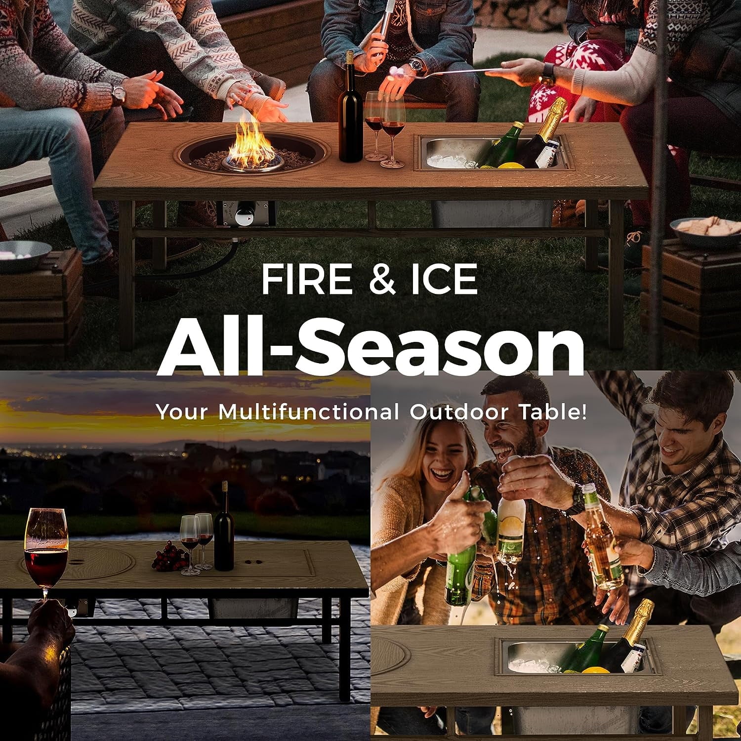 - 【Versatile 3-in-1 Table】A practical fire pit table for warm gatherings, a refreshing ice bucket table for chilled beverages, and a stylish coffee table for cherished moments. Elevate your outdoor experience with this space-saving design.