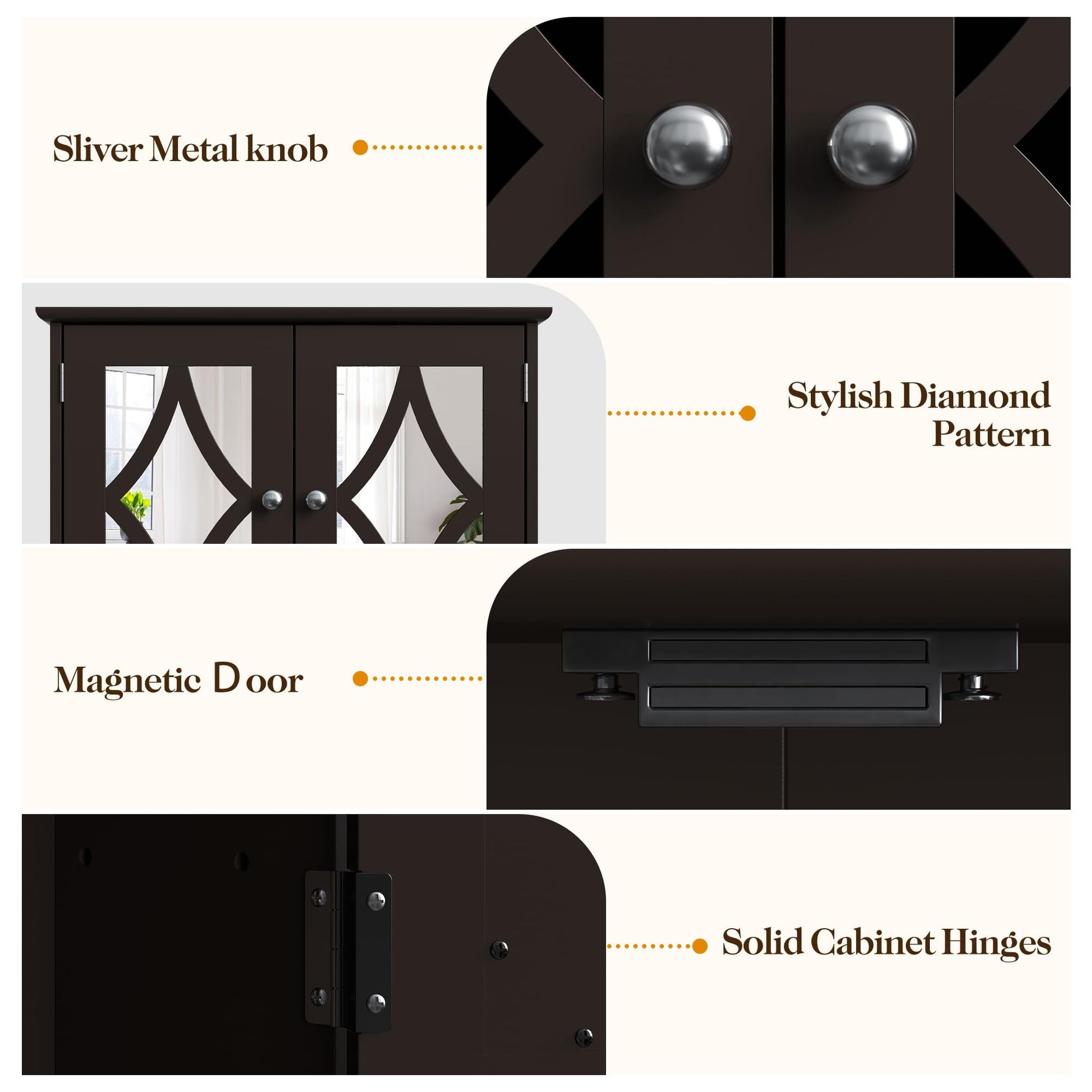 Transform your bathroom into a sanctuary of style and organization with our versatile medicine cabinet with mirror. Equipped with two adjustable shelves, this bathroom cabinet offers ample storage space for placing daily used items. The open towel rack adds a touch of convenience, keeping your bathroom organized. Made of MDF material with water-resistant painting, the wall cabinet is sturdy and anti-rust, providing long-term service. With its retro inspired design and diamond pattern accents, our vintage storage cabinet adds a touch of elegance to any room, whether it's the living room, kitchen or bedroom.