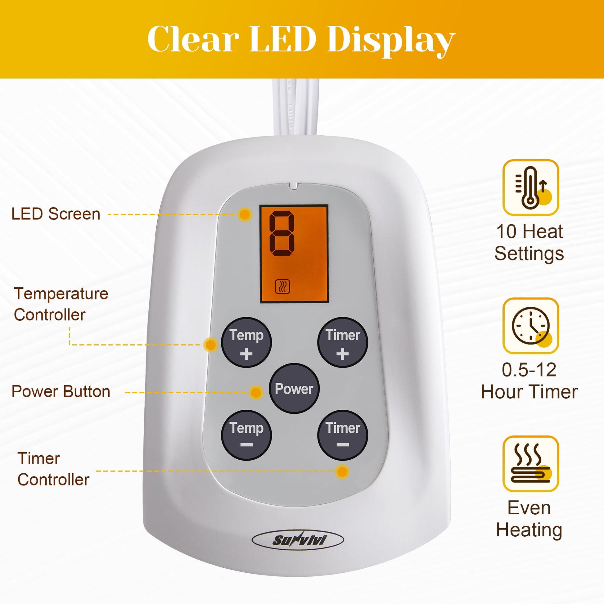RoyalCraft Electric Heated Blanket, 84" x 62" Twin Size Electric Blanket with 10 Heating Levels and 12 Hours Auto-Off, Soft Flannel and Sherp Blanket with ETL & FCC Certification, Grey