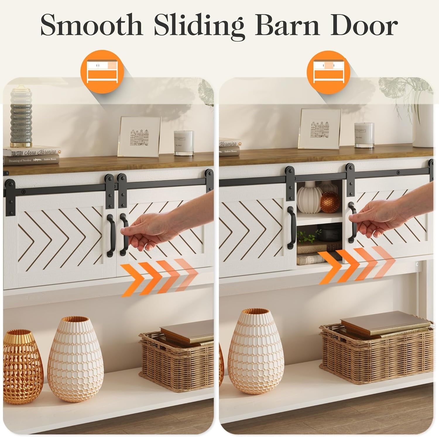 - Farmhouse Modern Charm: This wood console table can be your hallway table, sofa table, or buffet cabinet. Its elegant mix of colors, along with the herringbone pattern on the doors, effortlessly elevates any room, be it your living room, bedroom, hallway, or home office.