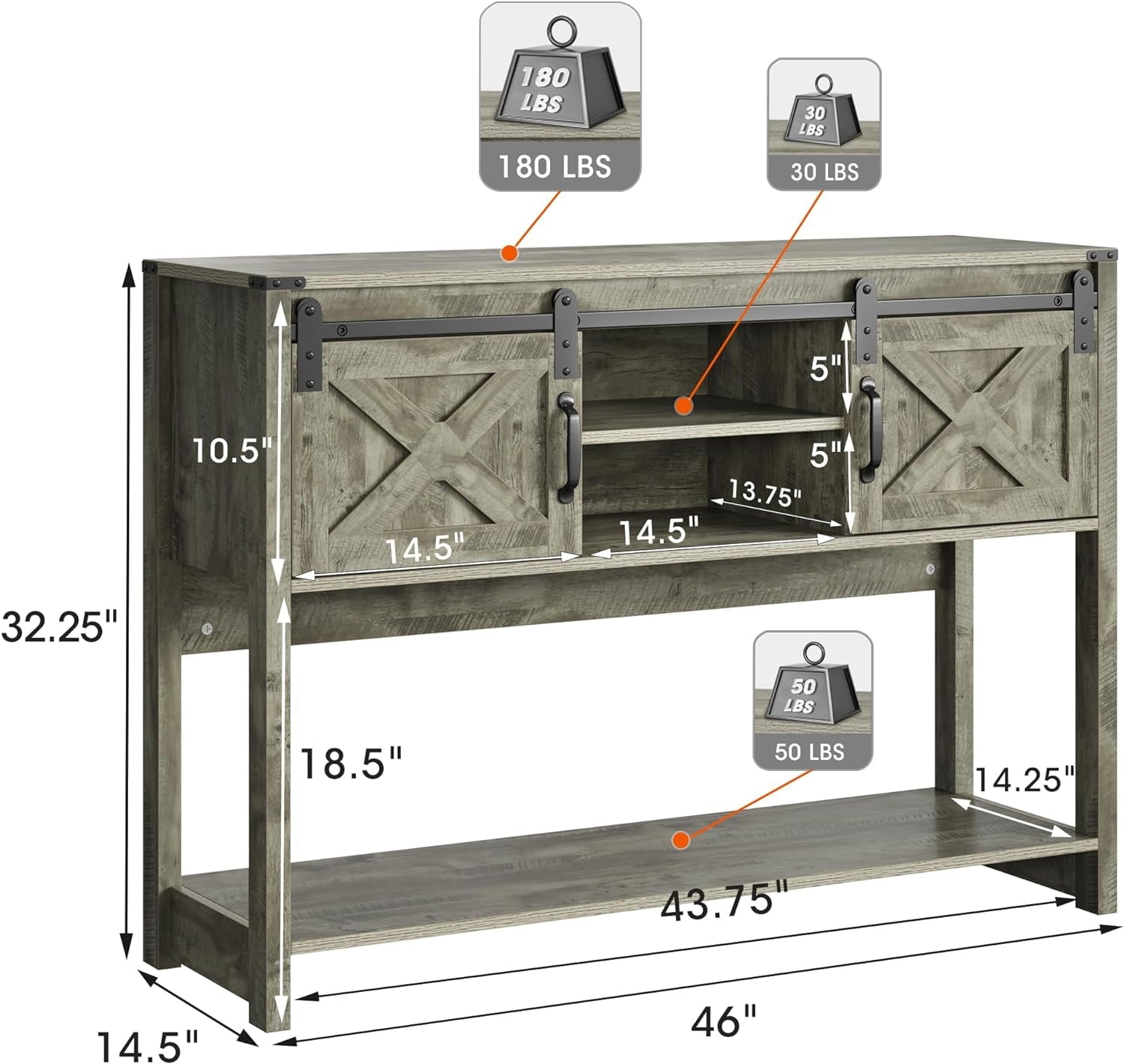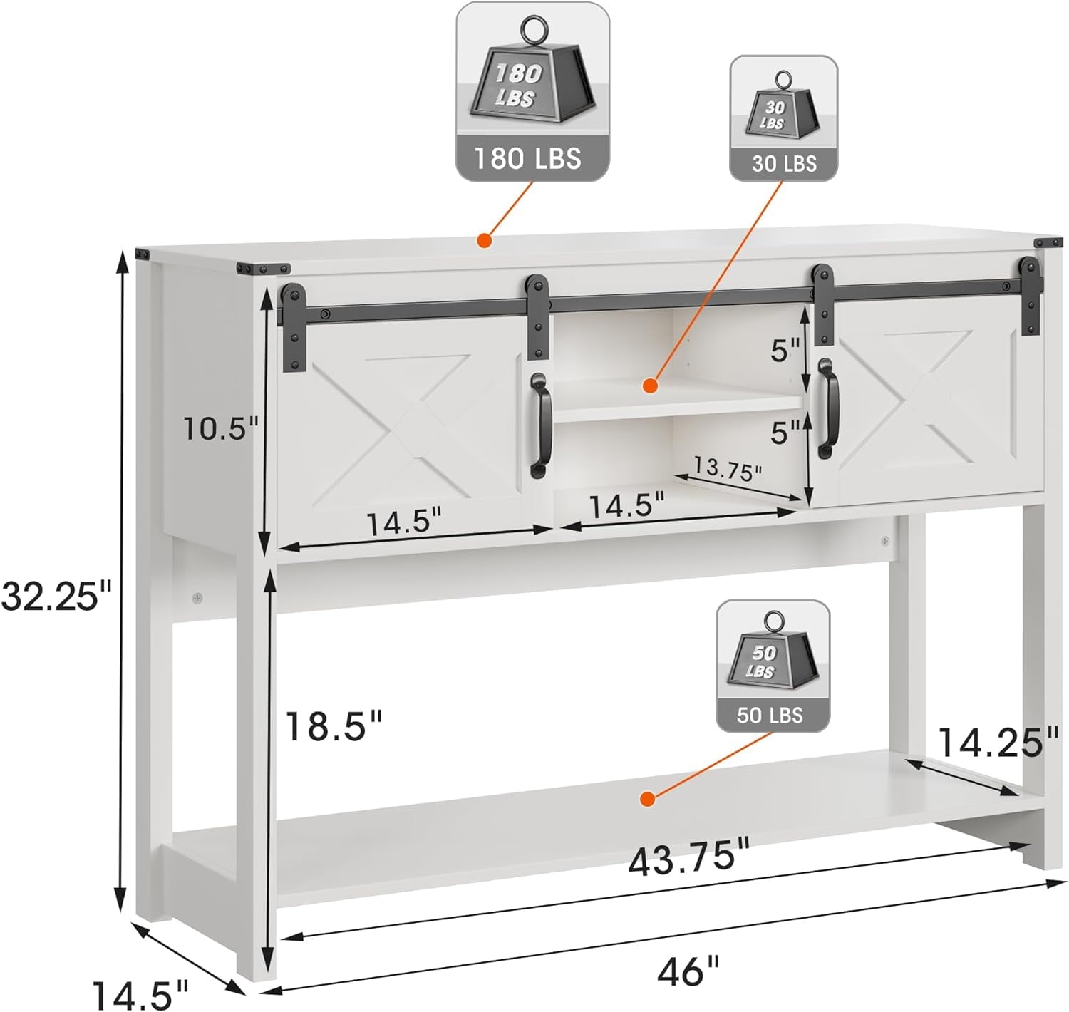 Royalcraft Entryway Table with Storage, 46" Modern Farmhouse Console Table with Sliding Barn Door, Wood Rustic Sofa Table with Adjustable Shelf for Hallway, Living Room, Foyer, White and Rustic Oak