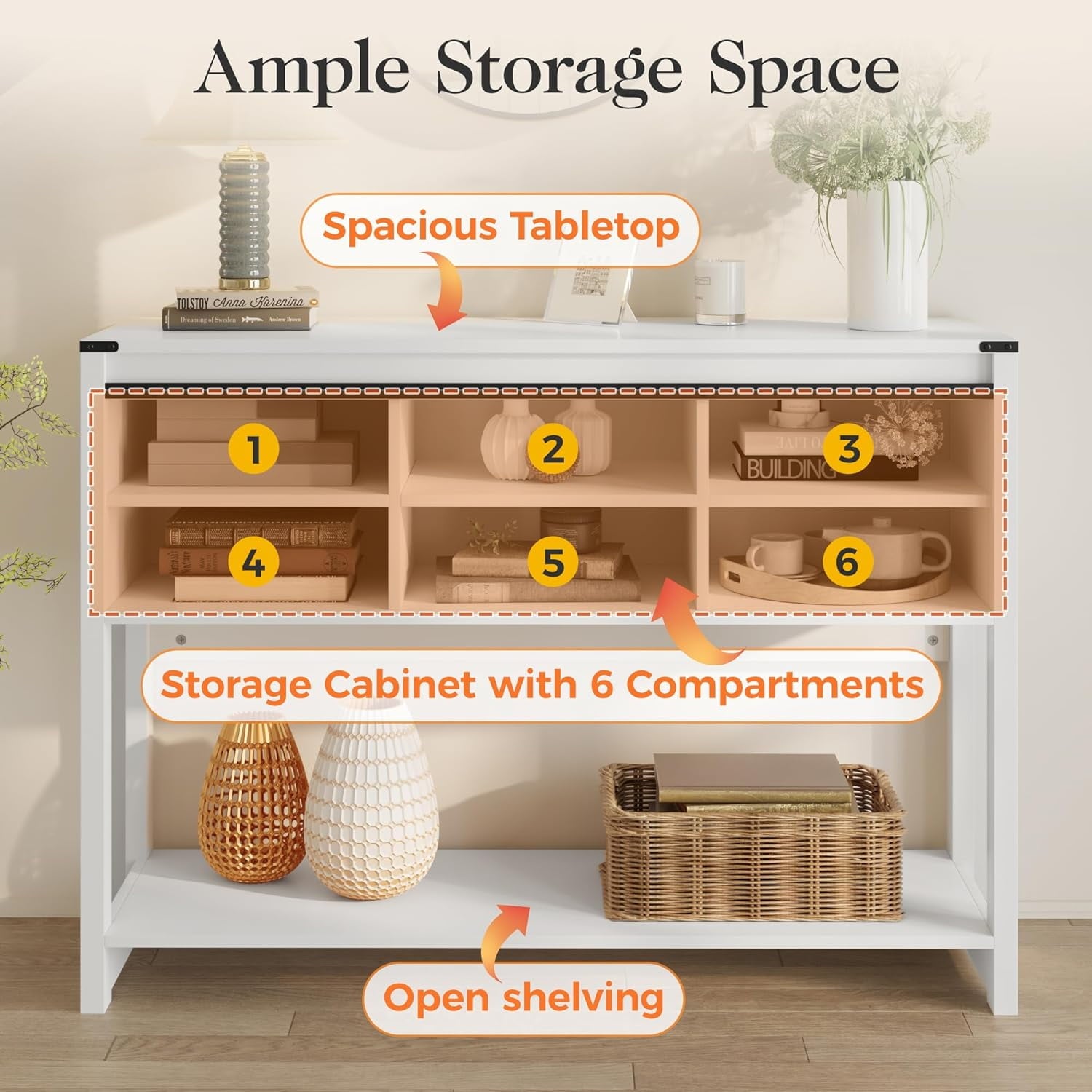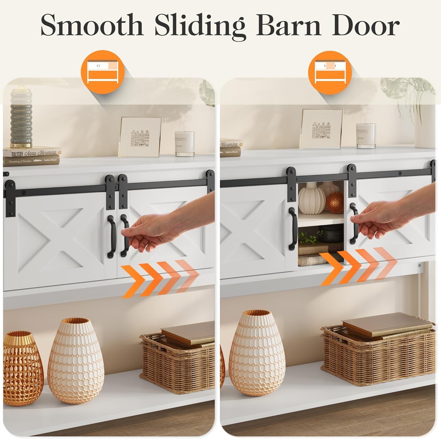 Royalcraft Entryway Table with Storage Cabinets, 46" Modern Farmhouse Console Table with Sliding Barn Door, Wood Rustic Sofa Table with Adjustable Shelf for Hallway, Living Room, Foyer, White