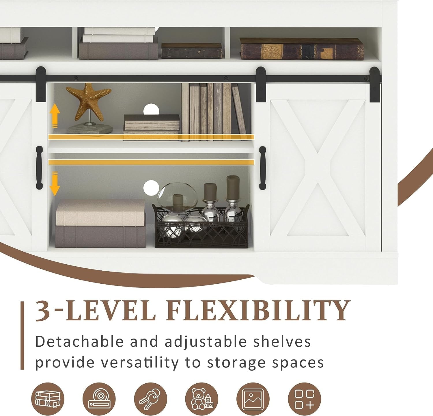 Royalcraft Farmhouse TV Stand for 65+ Inch TV, 34'' White Entertainment Center with Sliding Barn Doors, Wood Cabinet Television Stands- White