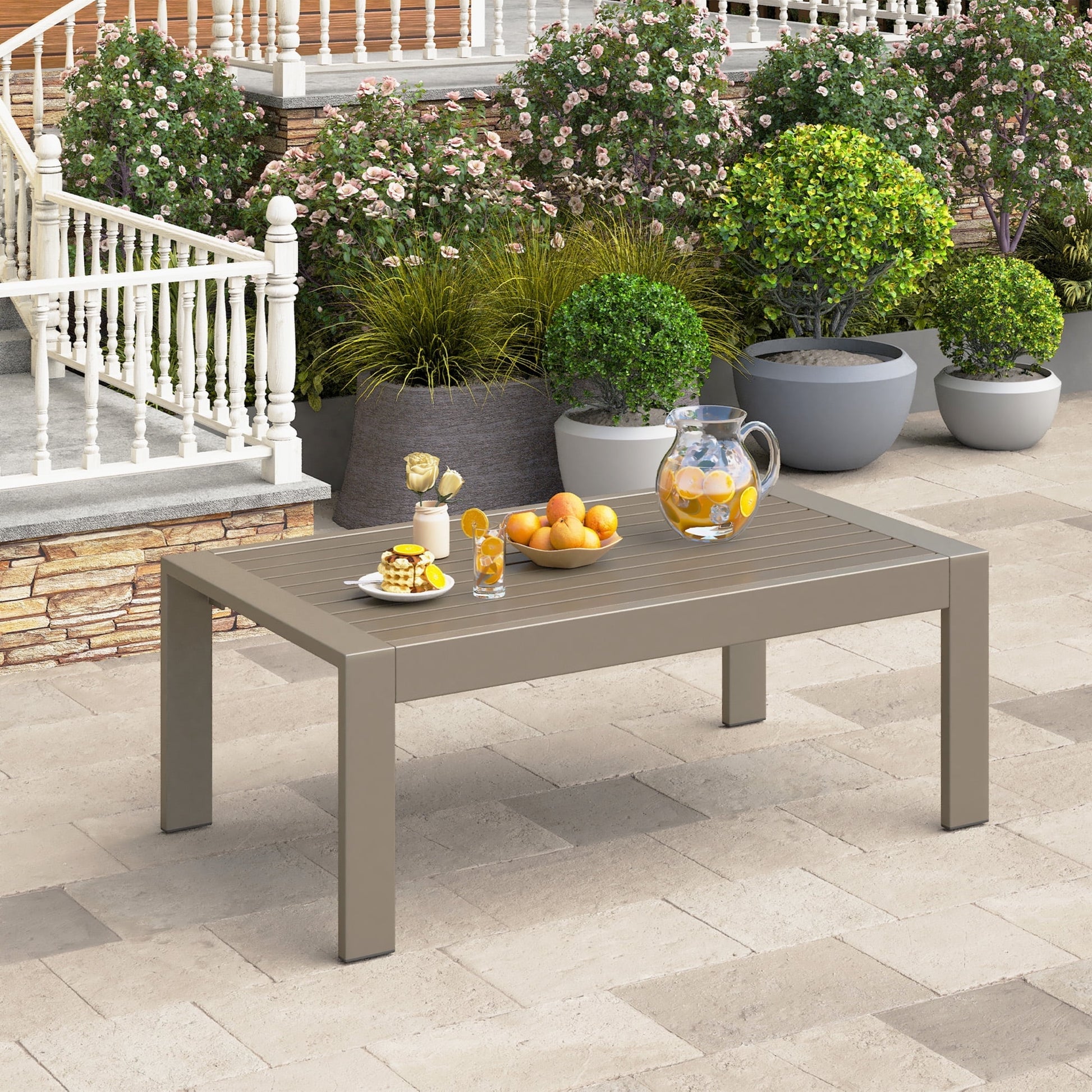 RoyalCraft Outdoor Furniture Patio Coffee Table, Ourdoor Rectangle Coffee Table, All-weather Outdoor Metal Coffee Table for Balcony, Garden, Deck, Backyard, Beige