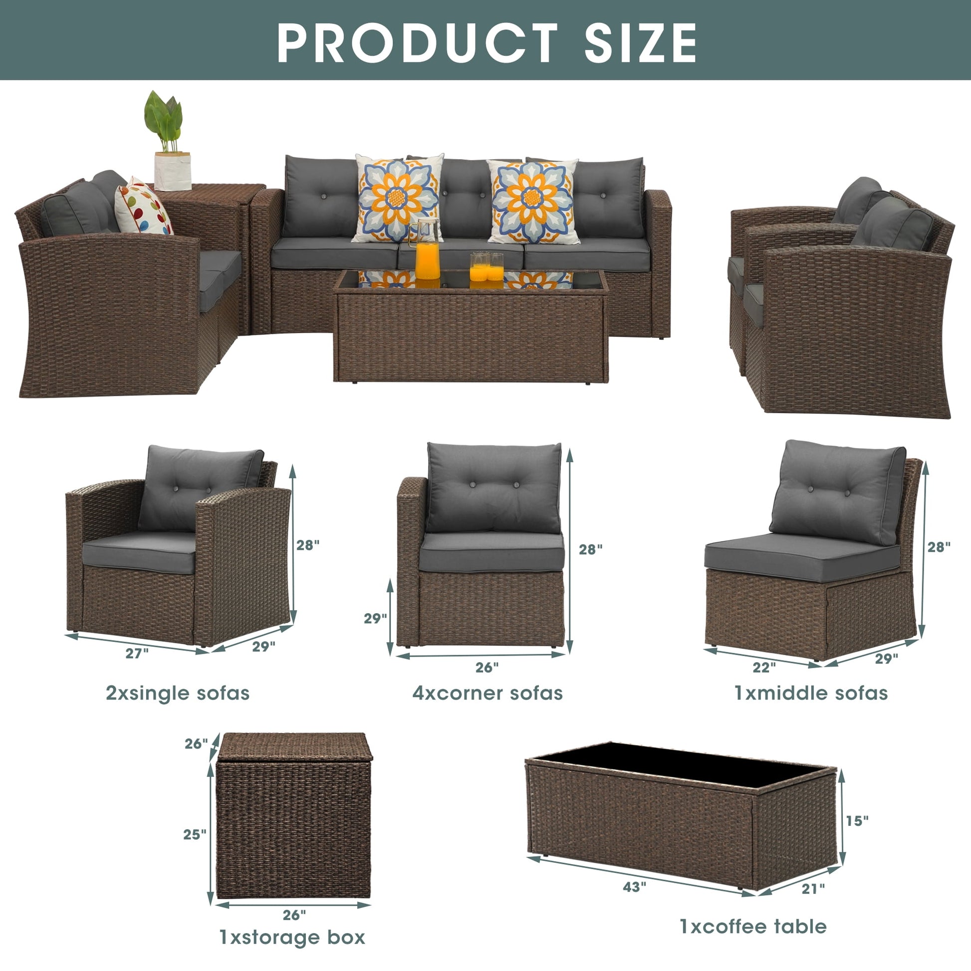 - 【Create Your Dream Setup Anytime】Thanks to our modular system, you can set up your wicker furniture however you please. When it’s time for a change, rearranging your patio set couldn’t be easier! Our outdoor wicker furniture collections offer outdoor seating, sectionals, curved sofas, coffee table and storage box. we work hard to make sure your outdoor space is a place you’re excited to show off to friends and famil.