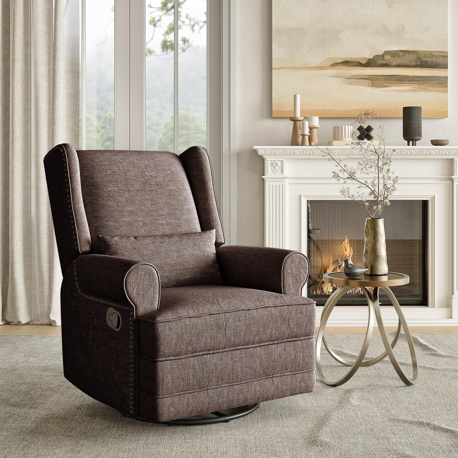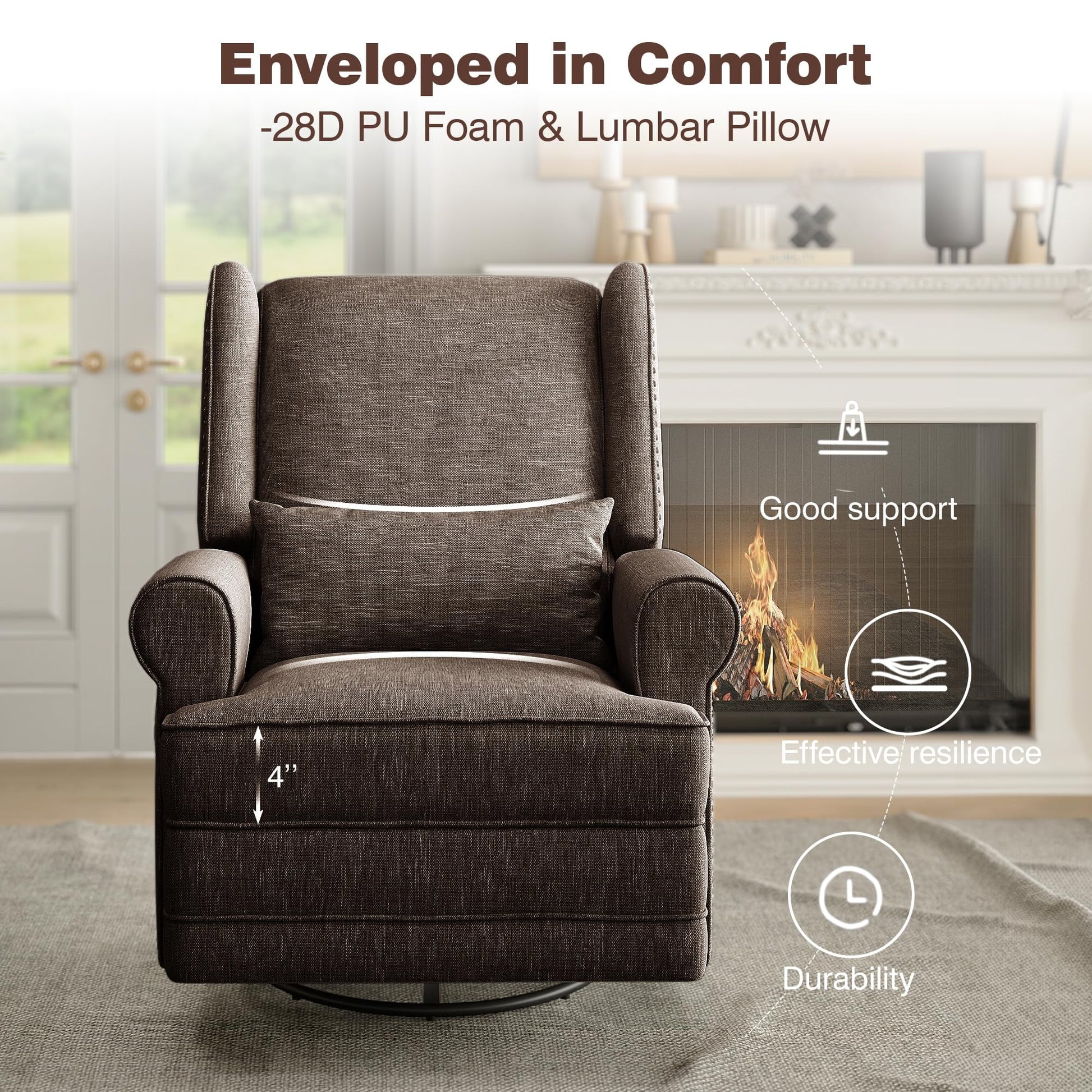 RoyalCraft Swivel Recliner Chair, Comfy Glider Rocking Chairs with Lumbar Pillow and Footrest, Upholstered Swivel Rocking Chair for Bedroom,Nursery,Brown