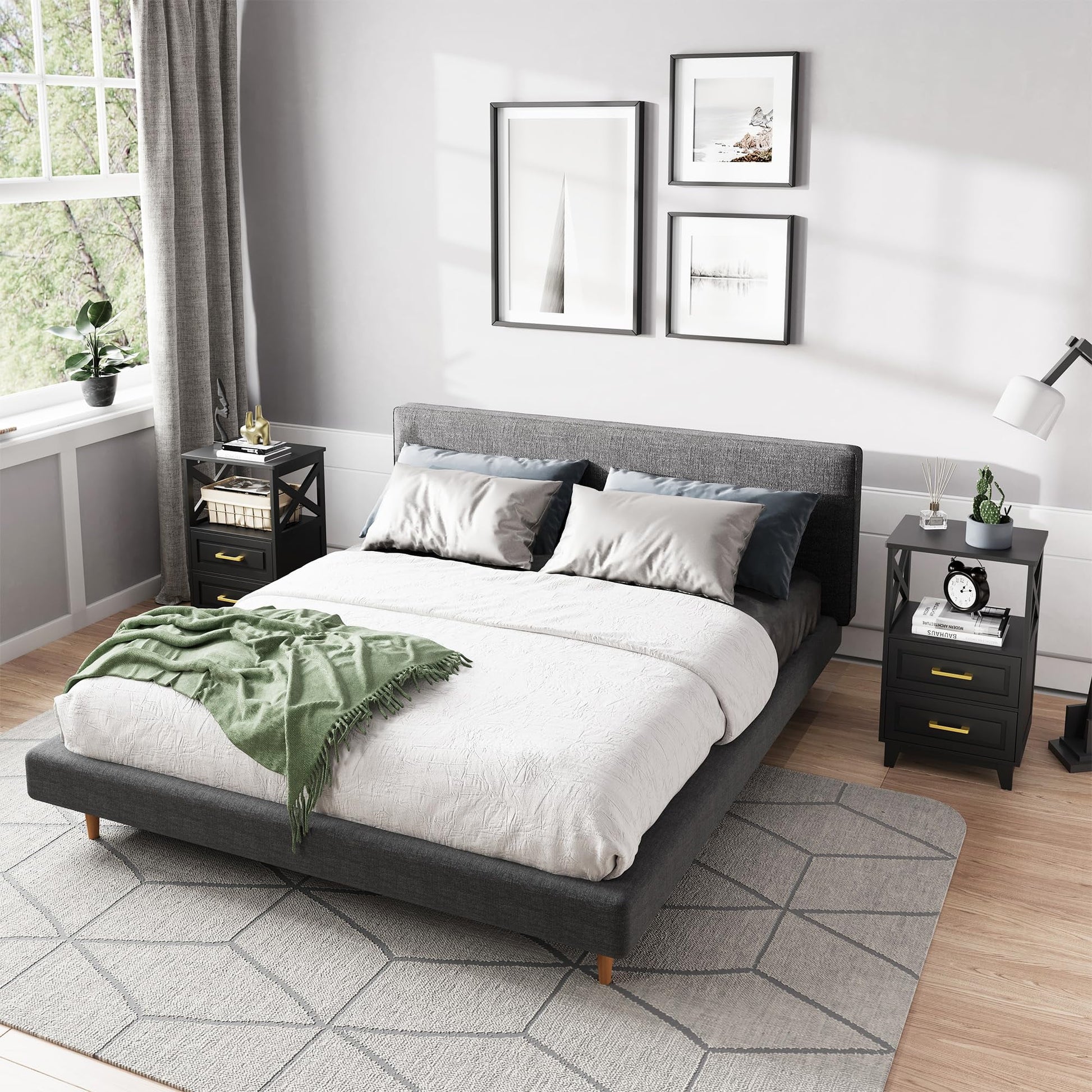 Our modern nightstand is an essential addition to elevate your home decor! This end table offers generous storage with two drawers and an open shelf, ensuring organized spaces and a tidy environment. Crafted from solid MDF material with a unique X-frame design, the side table guarantees stability and longevity to effortlessly meet your daily demands. The water-resistant painted surface ensures easy maintenance¡ªsimply wipe clean with a cloth. Its sleek and versatile design adapts perfectly as a bedside table or storage end table, ideal for bedrooms, living rooms, entryways.
