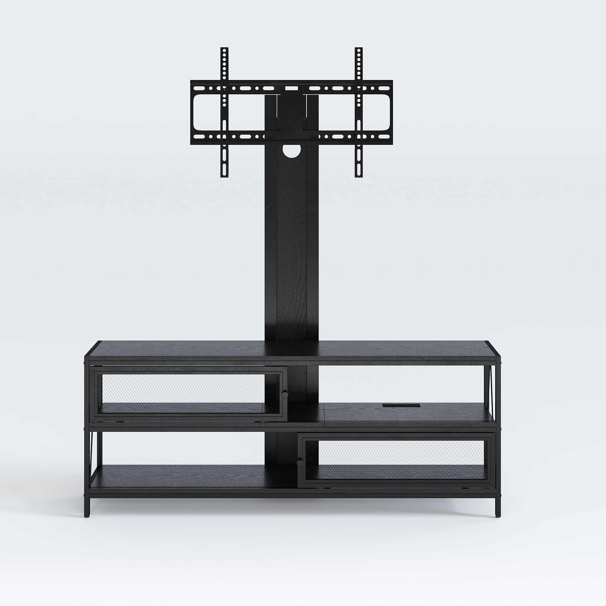 - Spacious Storage: 3 open shelves accommodate your gaming gear, audio-visual equipment, and media collections. The mesh wire sliding doors effortlessly expand your space, while the dark wood grain paired with a sleek black steel frame adds a vintage industrial flair to your space.