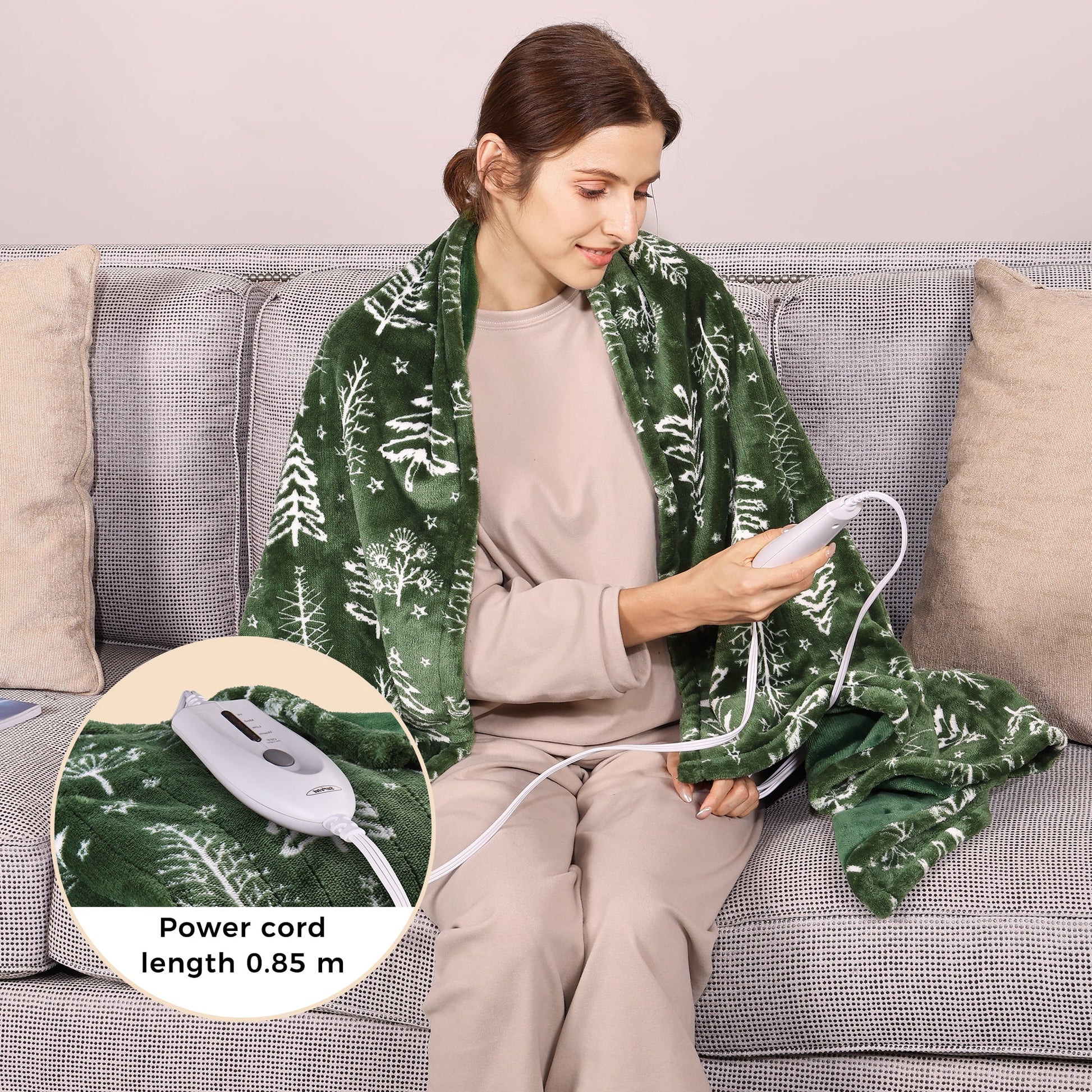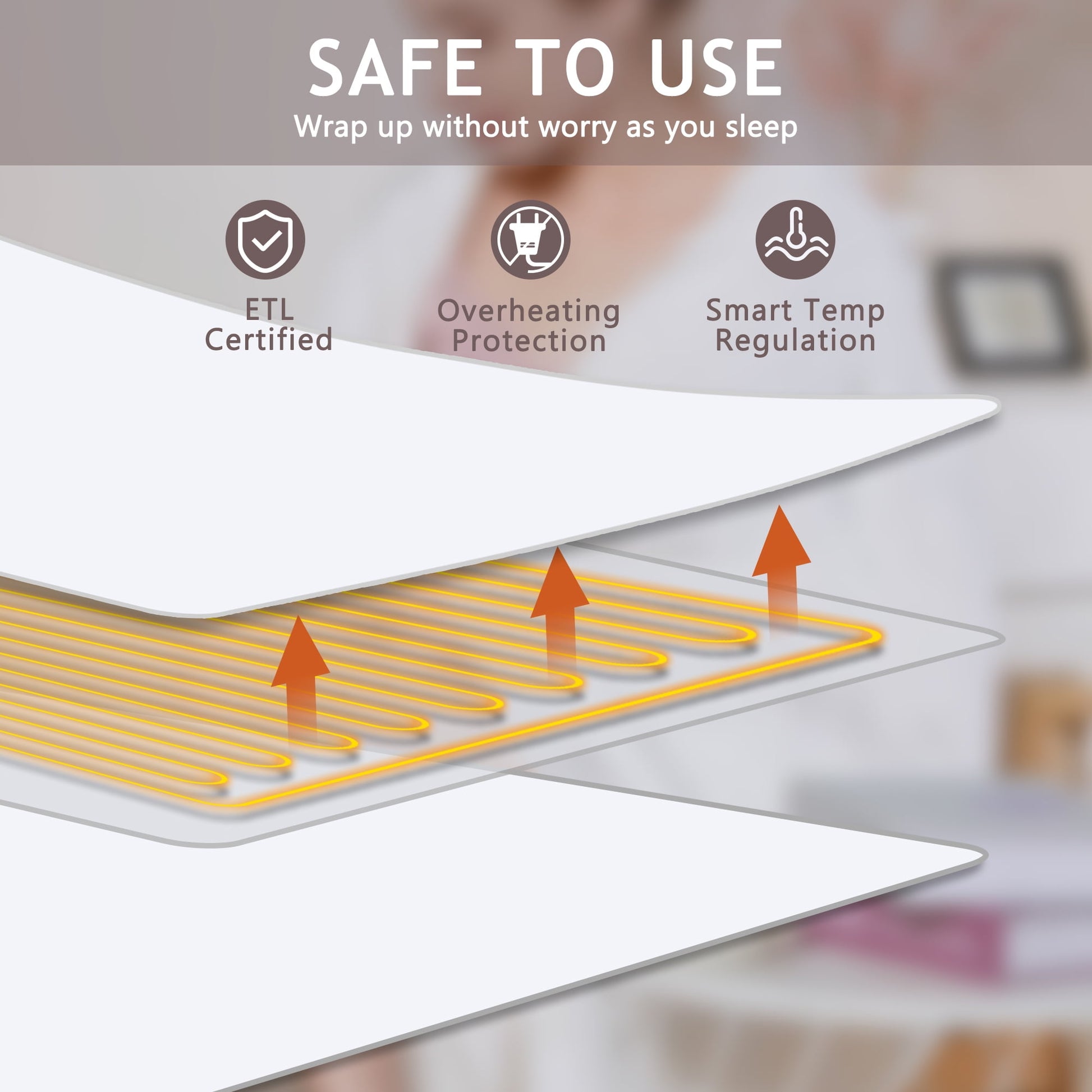 - MULTIPURPOSE USE:Perfect gift this electric blanket is like a warm hug. Using easily by turning on the power and adjust the temperature you want. It's a bed Blanket, Cape Blanket, Napping Blanket, Travel Blanket, Sofa Blanket,Camping Blanket . Snuggle on your couch or bed with ultra-warm flannel heated blanket to enjoy happy family hours while watching favorite TV shows. Perfect for indoor and outdoor use with consecutive warmth in chilly weather.