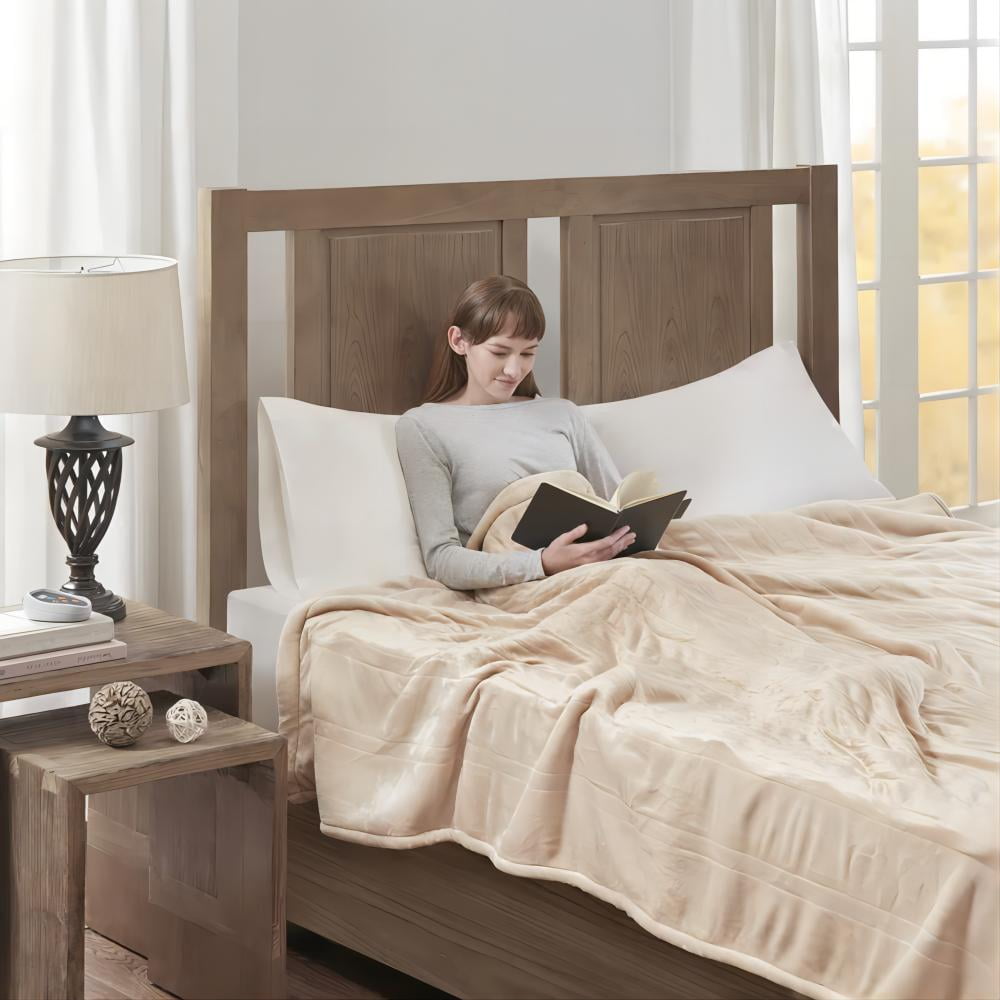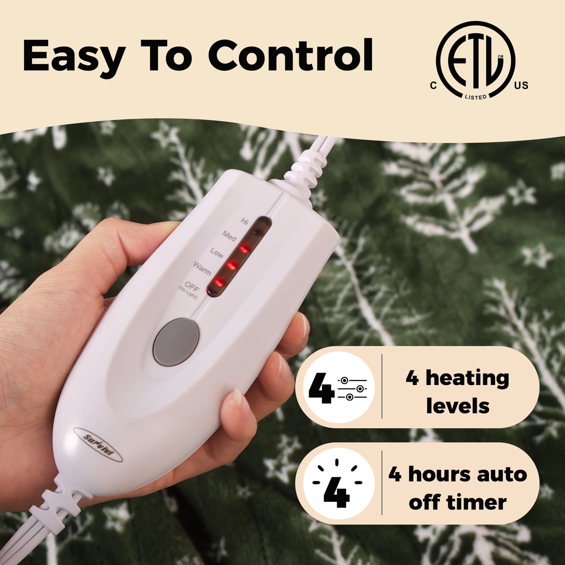 Sunvivi Electric heating blanket can bring you warmth and comfort. The blanket is made of high-quality fabrics which make the blanket look more elegant and luxurious. The soft and fluffy feel makes you feel more relaxed and warm. Being covered in the blanket can eliminate the fatigue of the day and make you sleep well all night long. This double-sided super soft luxurious plush blanket throw provides 10 heating levels so that you can choose the temperature that suits you best. With the timing function of 10 hours automatic shutdown, it is safer to use. You also can set to auto shut off after 0.5H-12H. You do not need to worry about forgetting to turn it off after falling asleep. It provides you with the greatest degree of safety protection, lets you save power and worry. Machine-washable heated blanket is easy to keep clean, soft and durable for years (please detach the controller before cleaning). It is a great choice for you to use on the bed, sofa, couch, outdoors or as a gift. You can snuggle up with your loved ones while watching TV and have a great time! We believe you will fall in love with this blanket, as it will add warmth to your life.