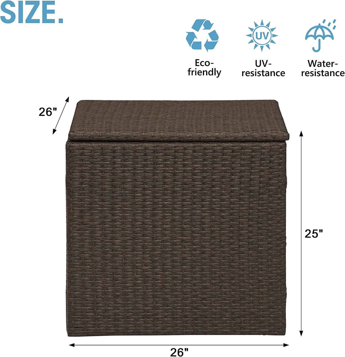 Sunvivi Outdoor/Indoor Wicker Storage Box, Rattan Bin Deck Box for Cushions, Tools and Toys Brown for Garden, Beach, Balcony and Poolside