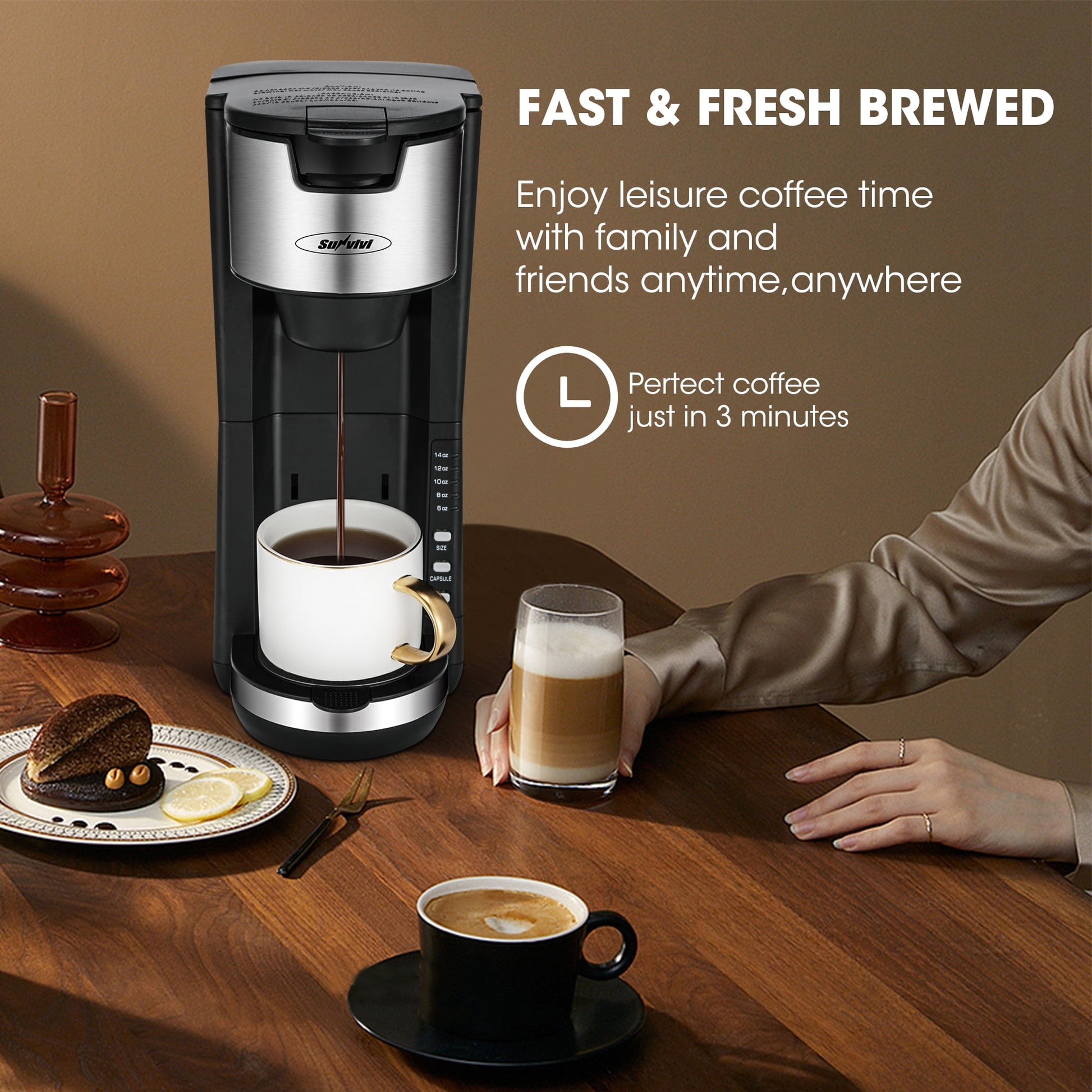 VERSATILE BREWING OPTTIONS: This single serve coffee maker can brew both K-Cup pods and ground coffee, giving you the flexibility to enjoy your favorite coffee in the way that you prefer.