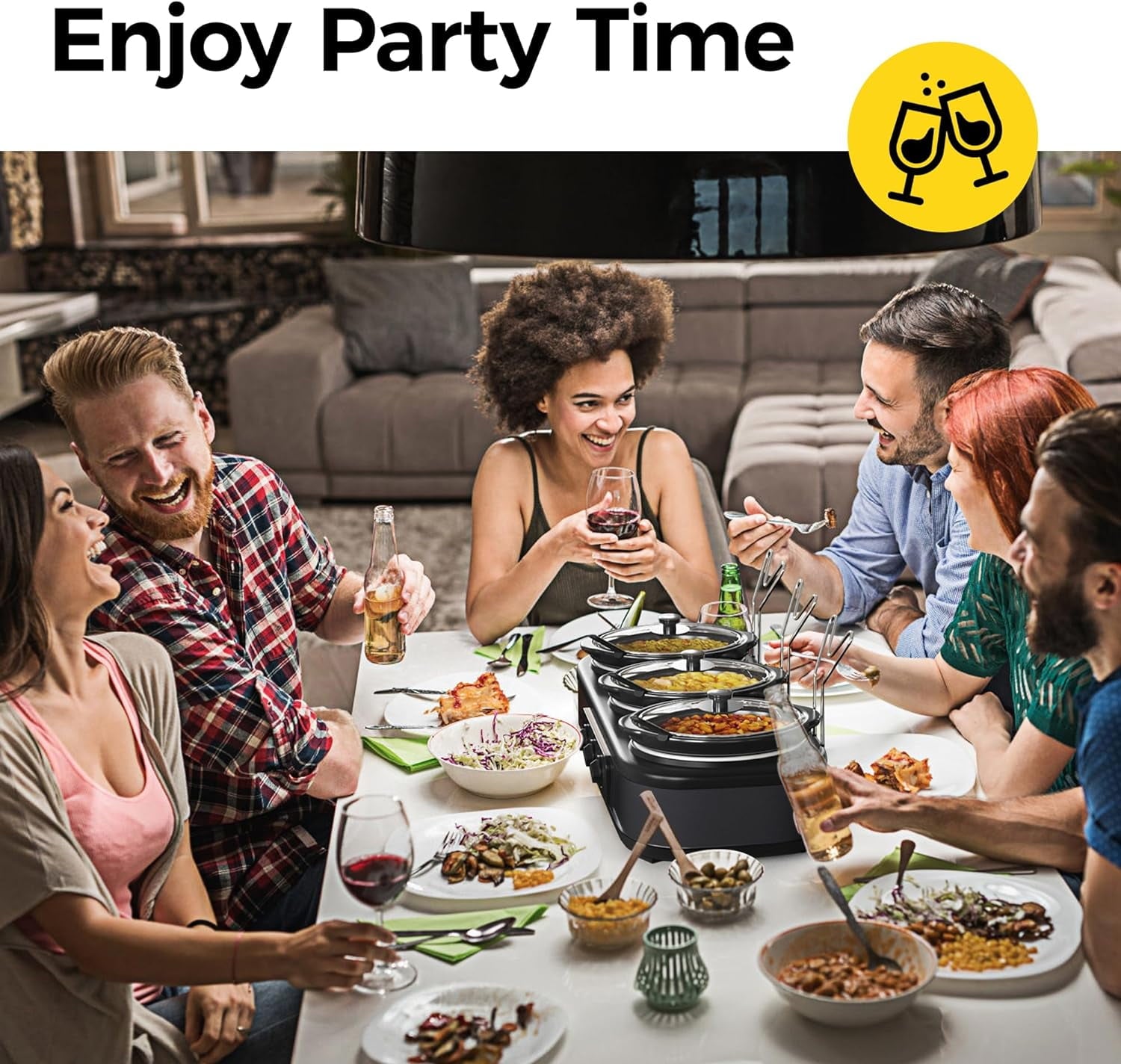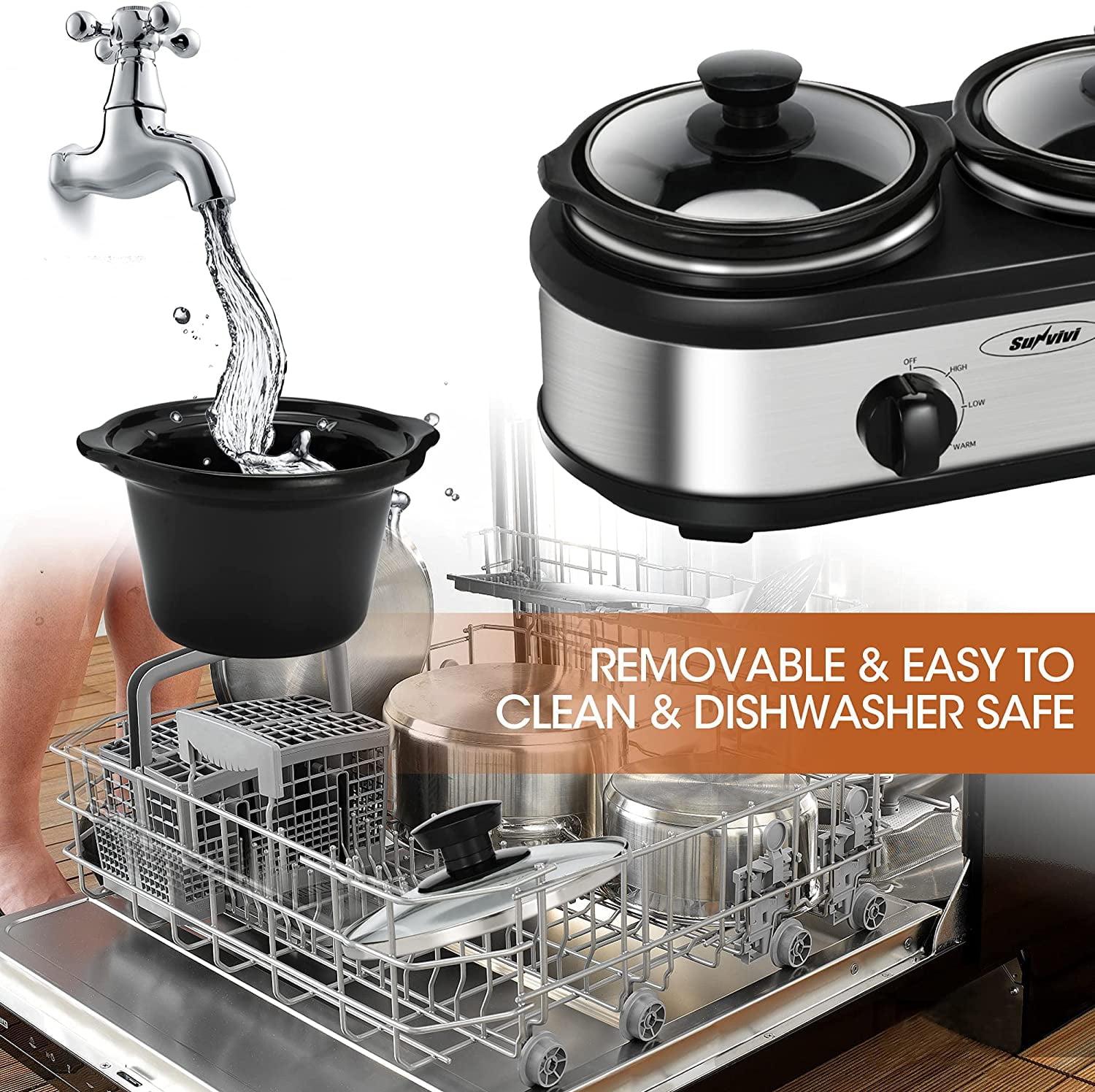 - DETACHABLE & CLEANABLE The crockpots have integrated cool-touch handles for easy removal from the buffet cooker and cleaned. Give you a comfortable cleaning experience after you enjoy the delicious food