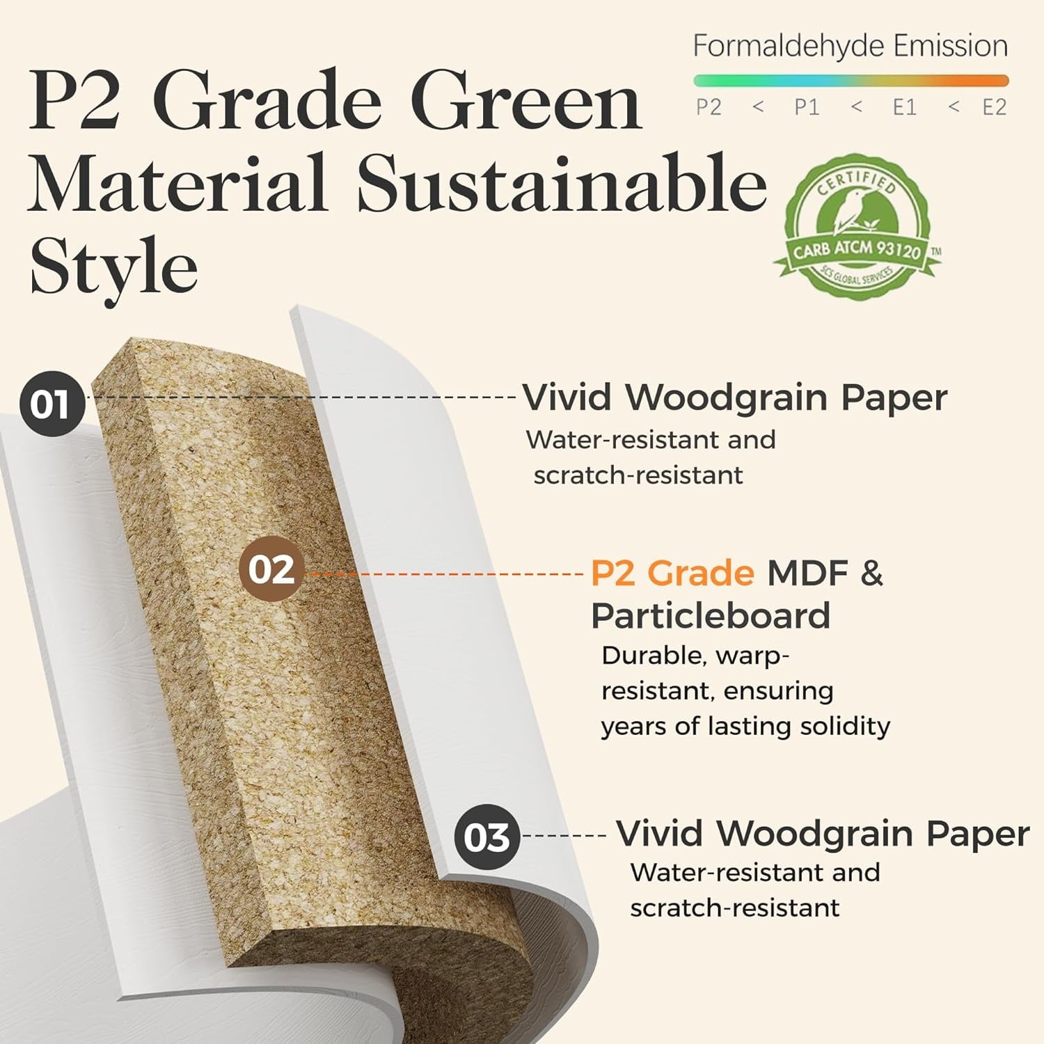 - P2 Grade Material with Painted Strip: Utilizes P2-grade MDF and particle board, enhanced with wood grain paper, this wood drawer dresser is durable, waterproof, and warp-resistant. Its painted decorative strip adds visual appeal with excellent moisture resistance.