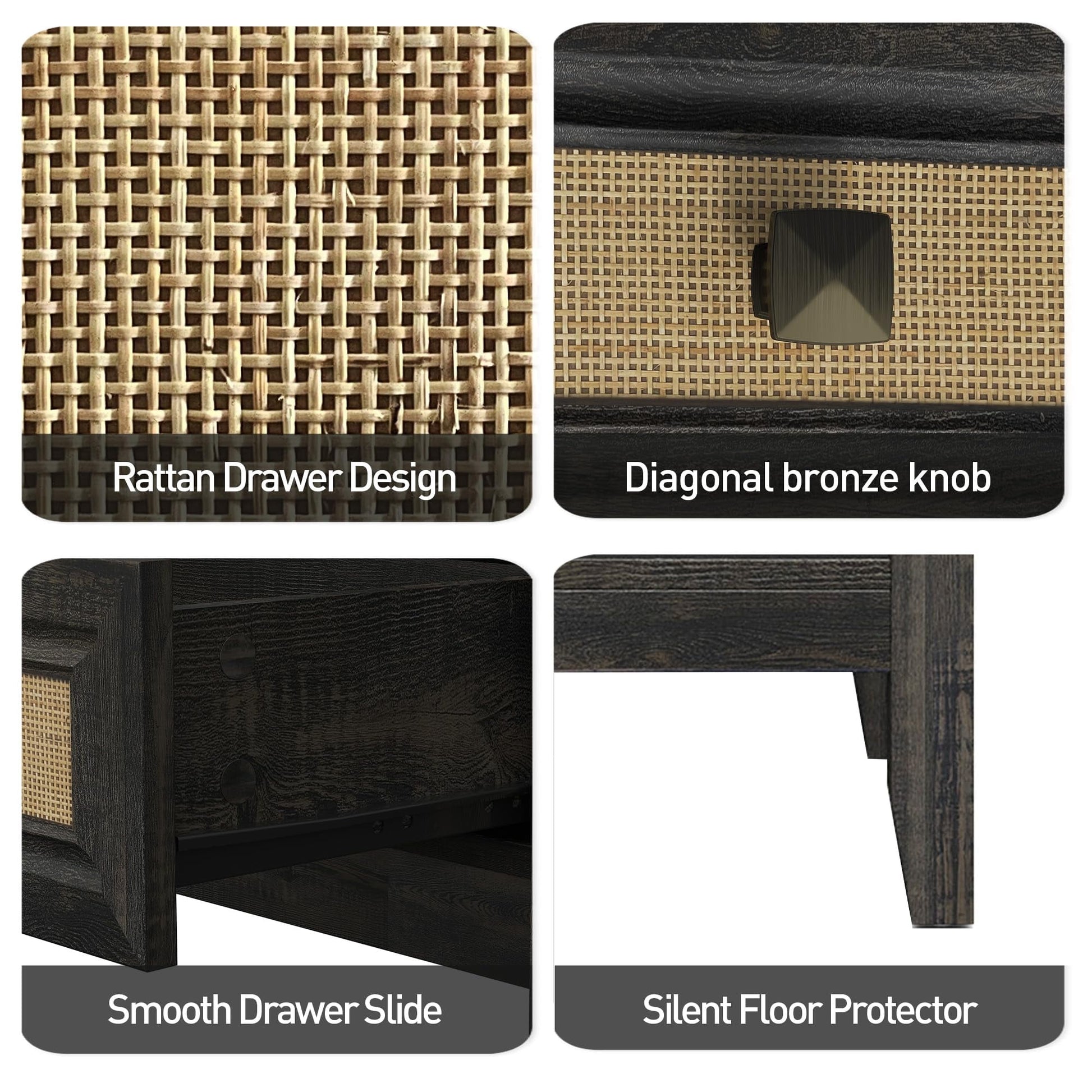 - Charming Rattan Design: Our console table combines wood grain panels with natural rattan, creating a delightful boho-chic vibe. Diagonal bronze knobs add a unique touch, adding warmth and organic elegance into any room.