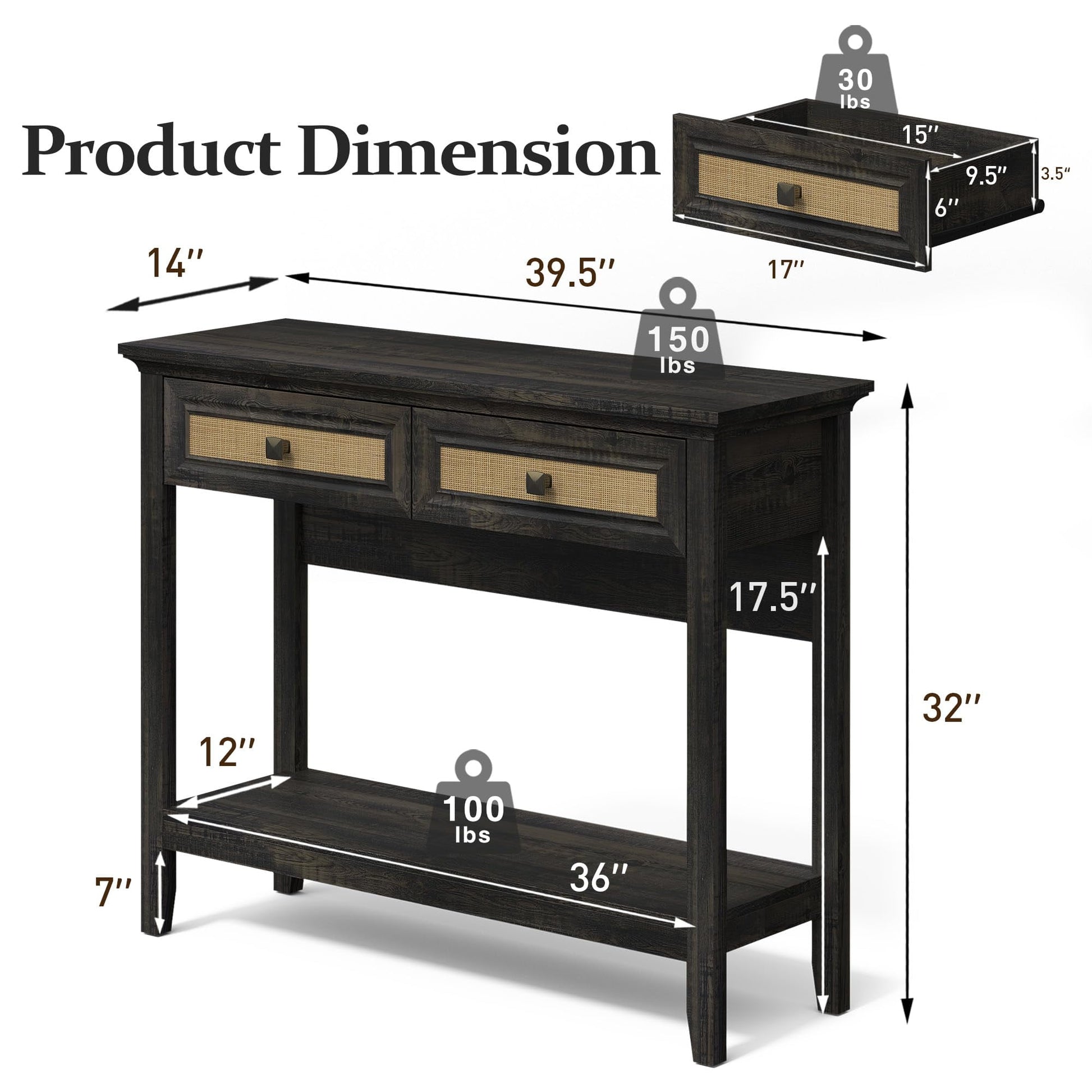 - Generous Storage: Featuring 2 spacious drawers and a lower open shelf, our entryway table offers ample space. Its tabletop easily accommodates lamps, stylish mirrors, vases, or everyday items, ensuring a tidy and organized space.
